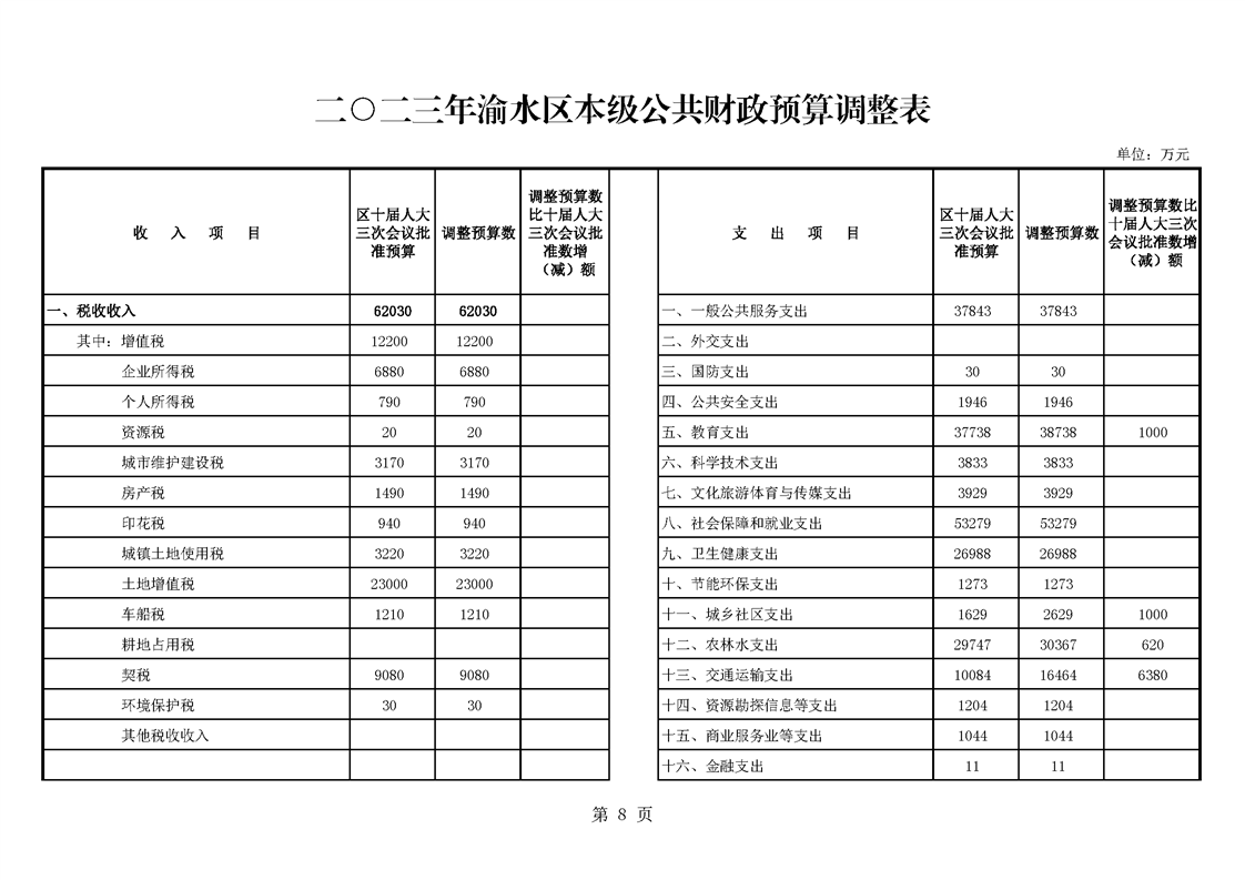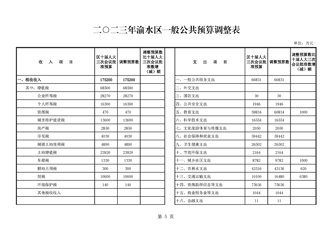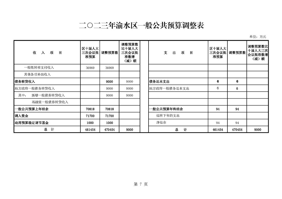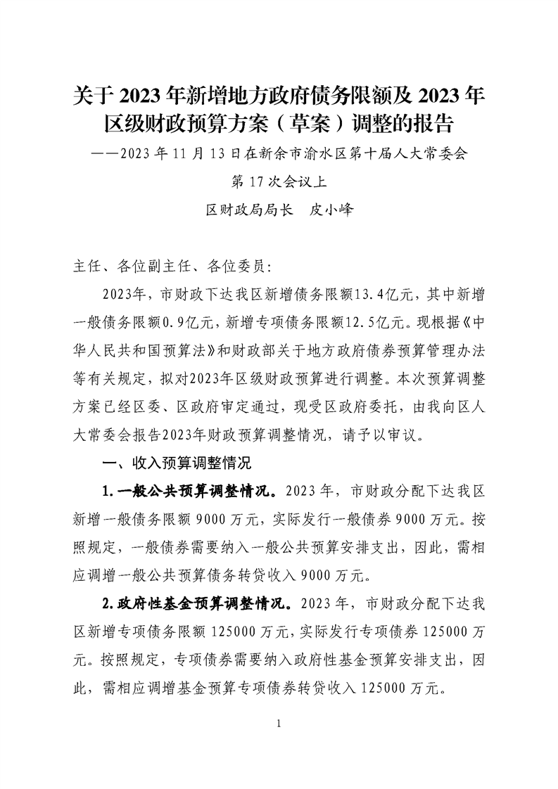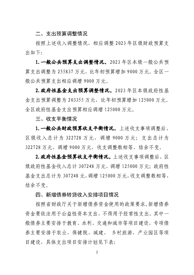 關于2023年新增地方政府債務限額及2023年區級財政預算方案(草案)調整的報告