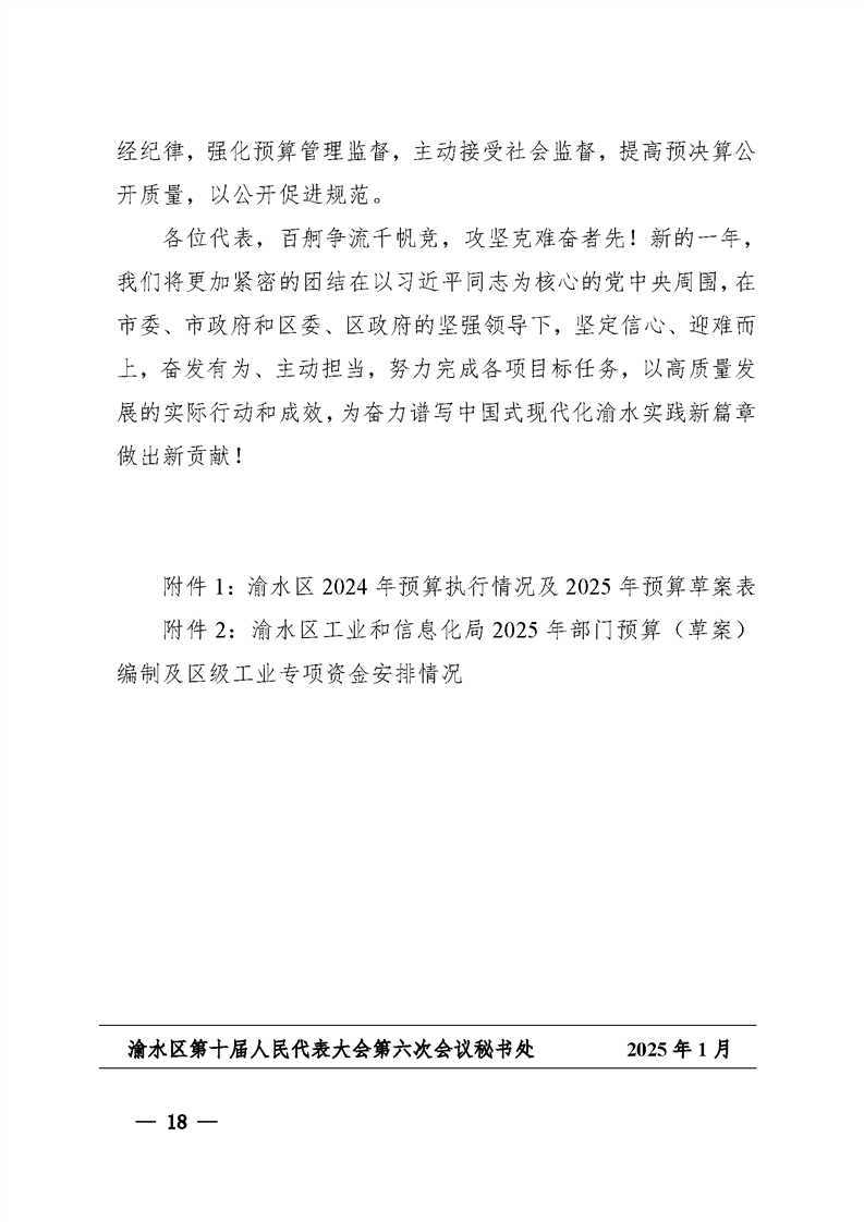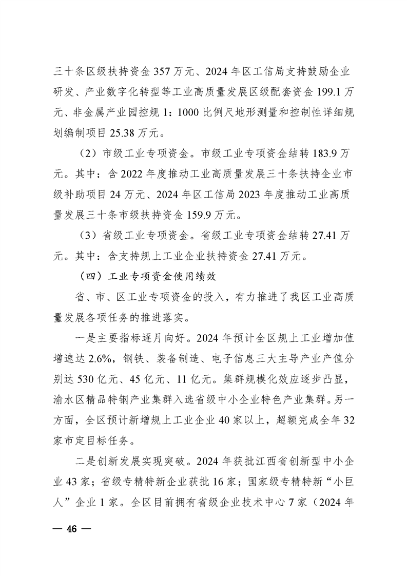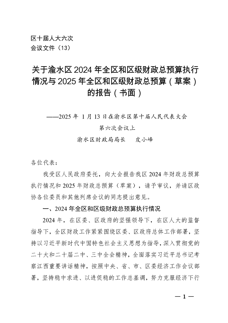 關于渝水區2024年全區和區級財政總預算執行情況與2025年全區和區級財政總預算(草案)