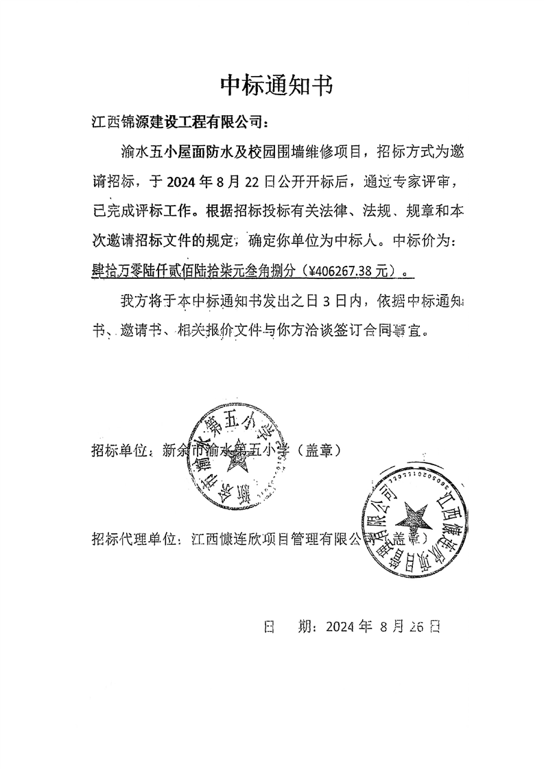 【工程建設(shè)項(xiàng)目招標(biāo)投標(biāo)】渝水五小屋面防水及校園圍墻維修改造項(xiàng)目