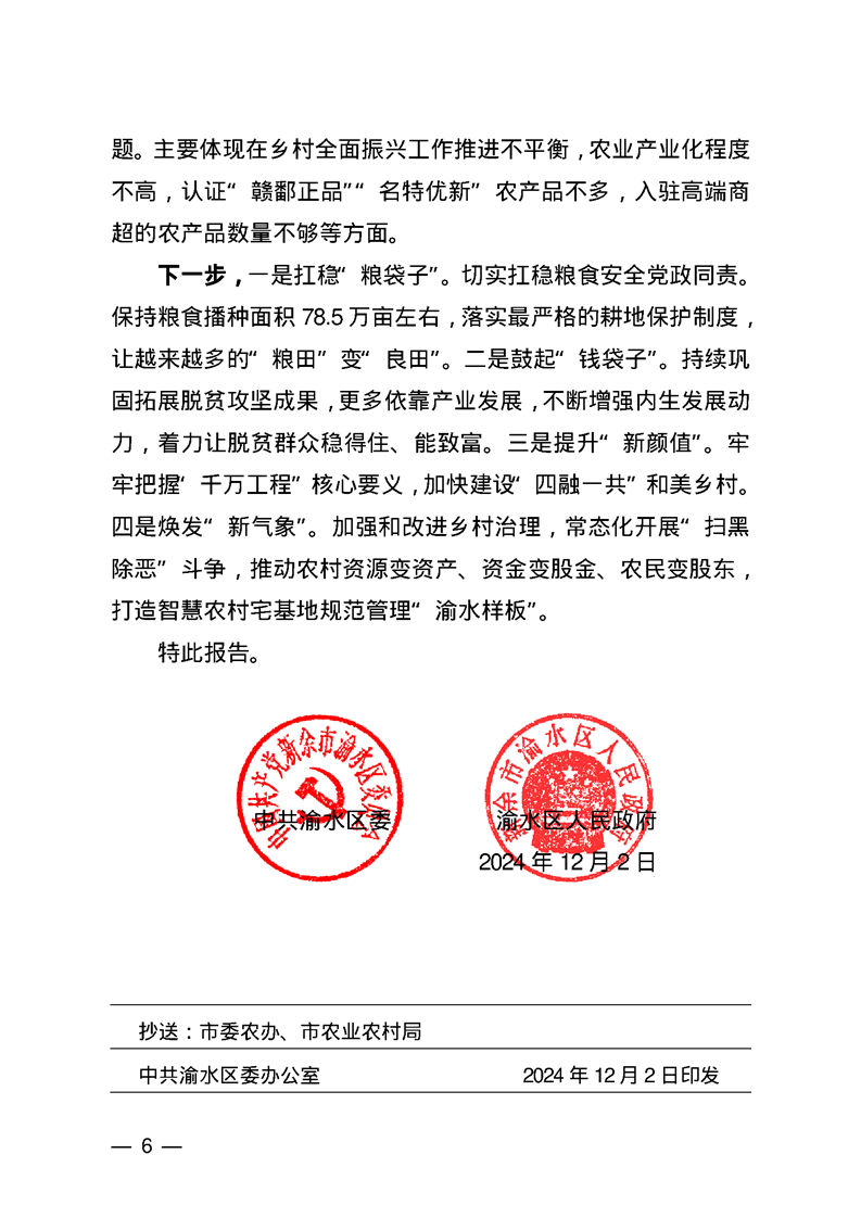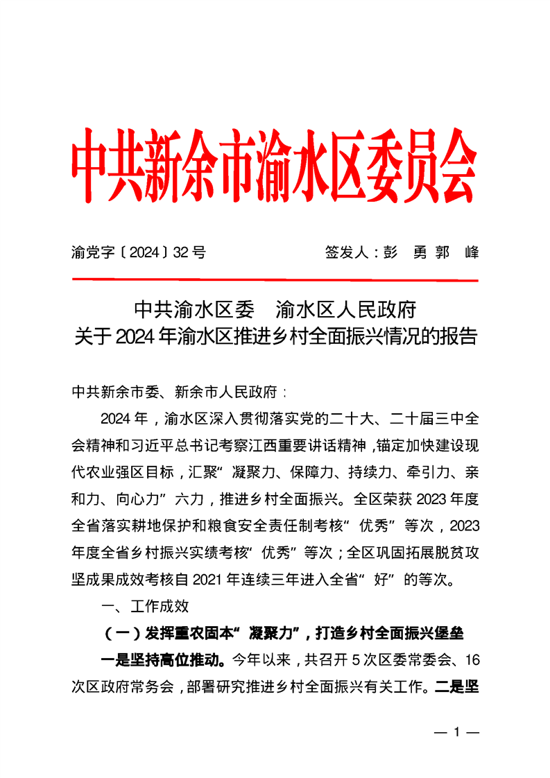 渝水區(qū)2024年鄉(xiāng)村振興工作推進(jìn)情況及成效