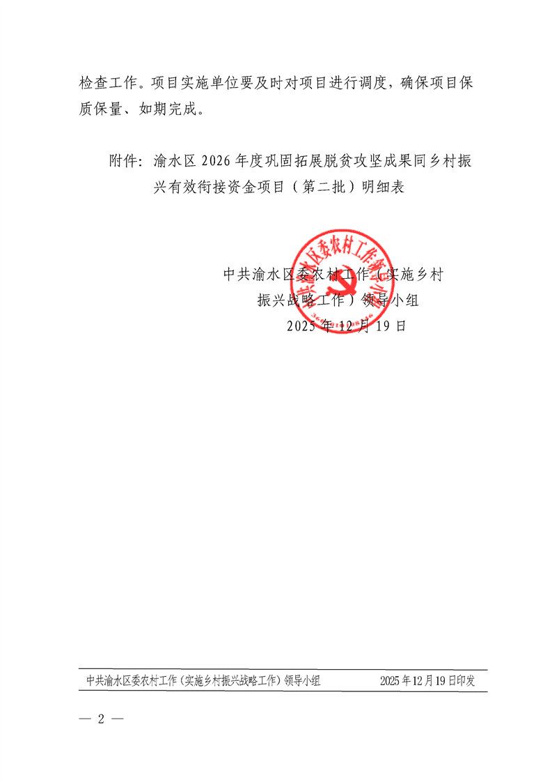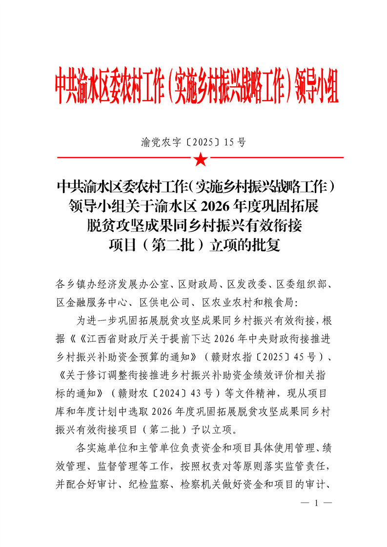 中共渝水區委農村工作(實施鄉村振興戰略工作)領導小組關于渝水區2026年度鞏固拓展脫貧攻堅成果同鄉村振興有效銜接項目(第二批)立項的批復