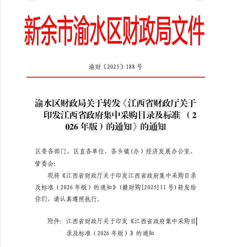 渝水區財政局關于轉發《江西省財政廳關于印發《江西省政府集中采購目錄及標準 (2026年版)的通知》的通知