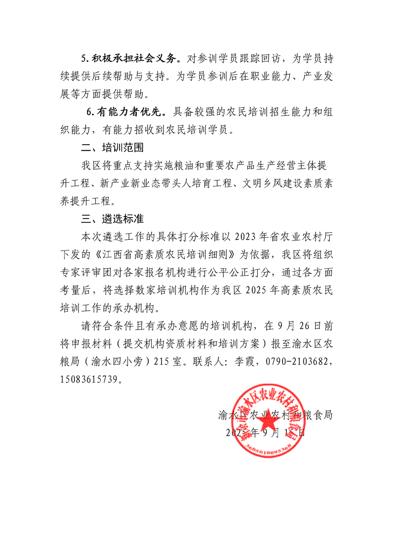 關(guān)于公開(kāi)遴選2025年渝水區(qū)高素質(zhì)農(nóng)民培訓(xùn)承辦機(jī)構(gòu)的公告