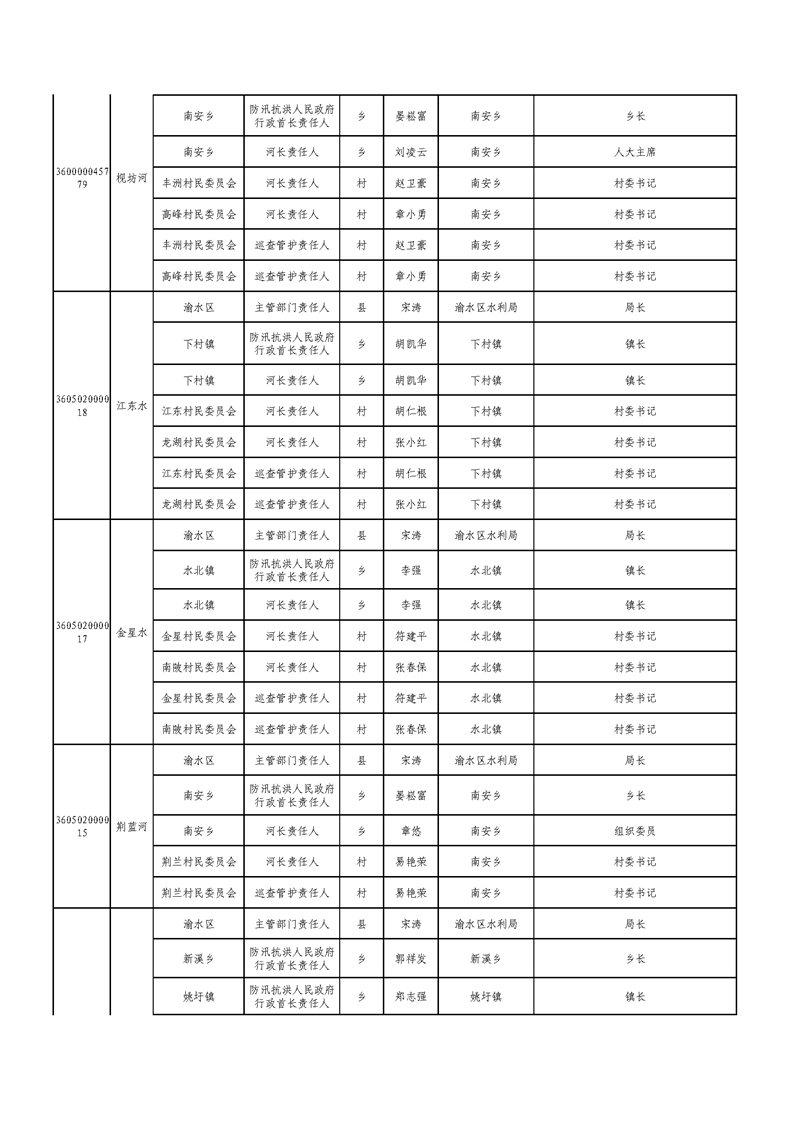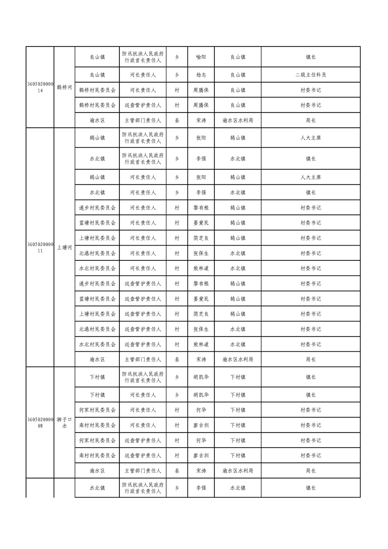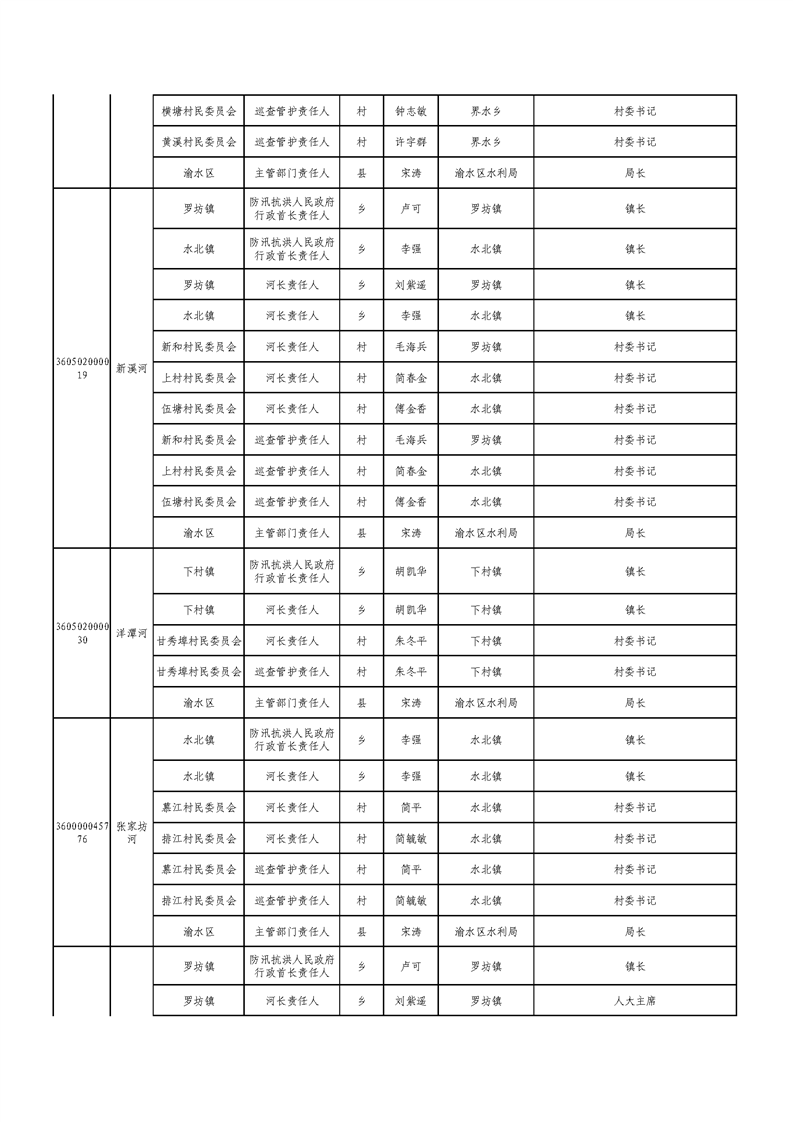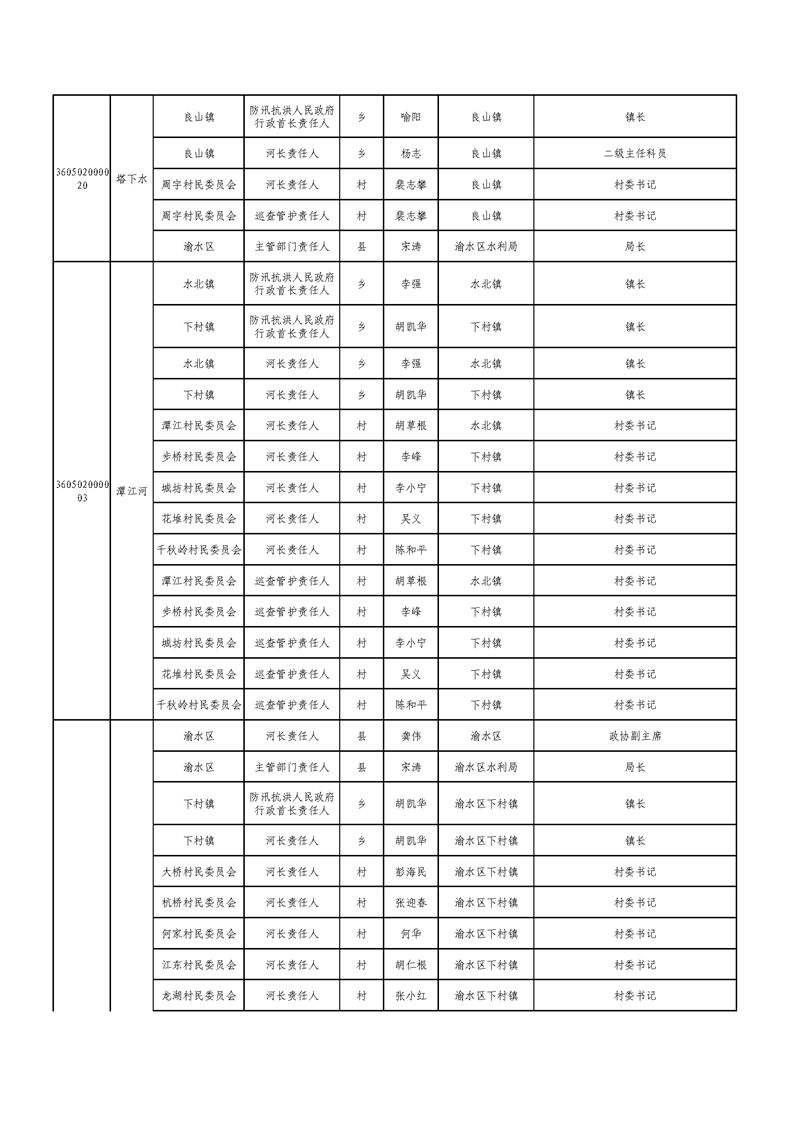新余市渝水區流域面積200km2及以下山區河流責任人名單公示