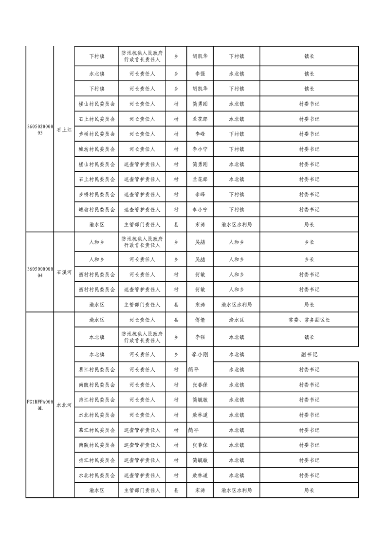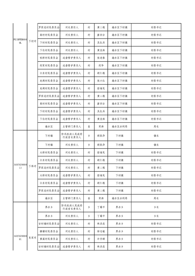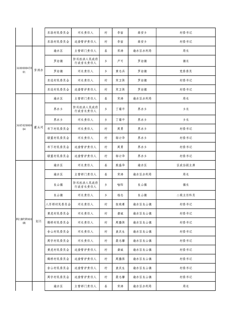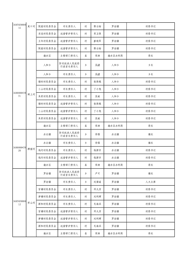 新余市渝水區流域面積200km2及以下山區河流責任人名單公示