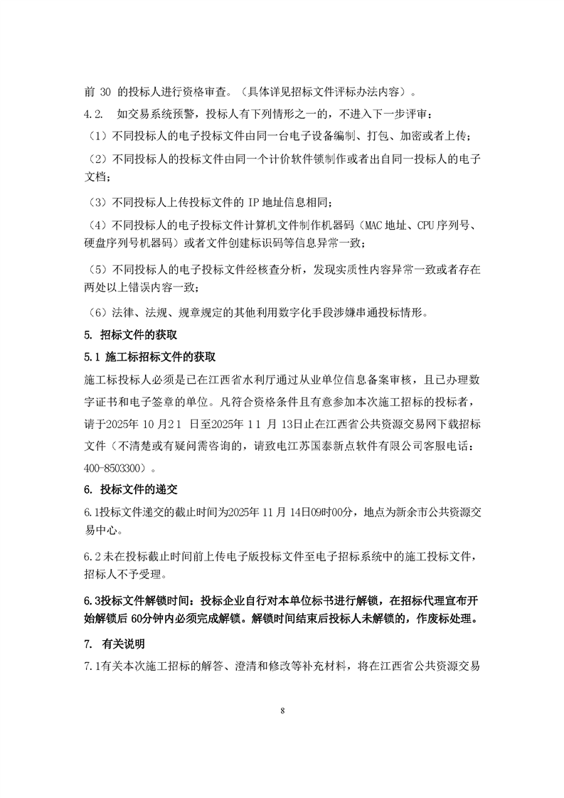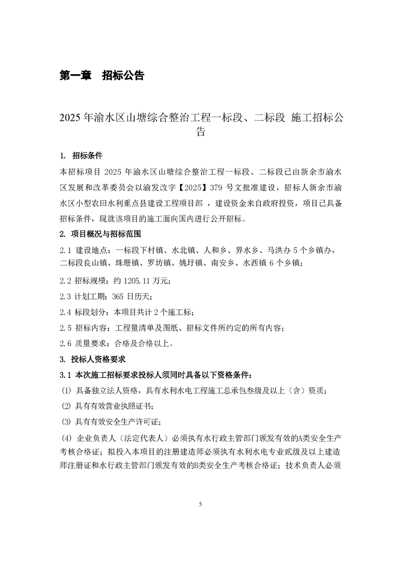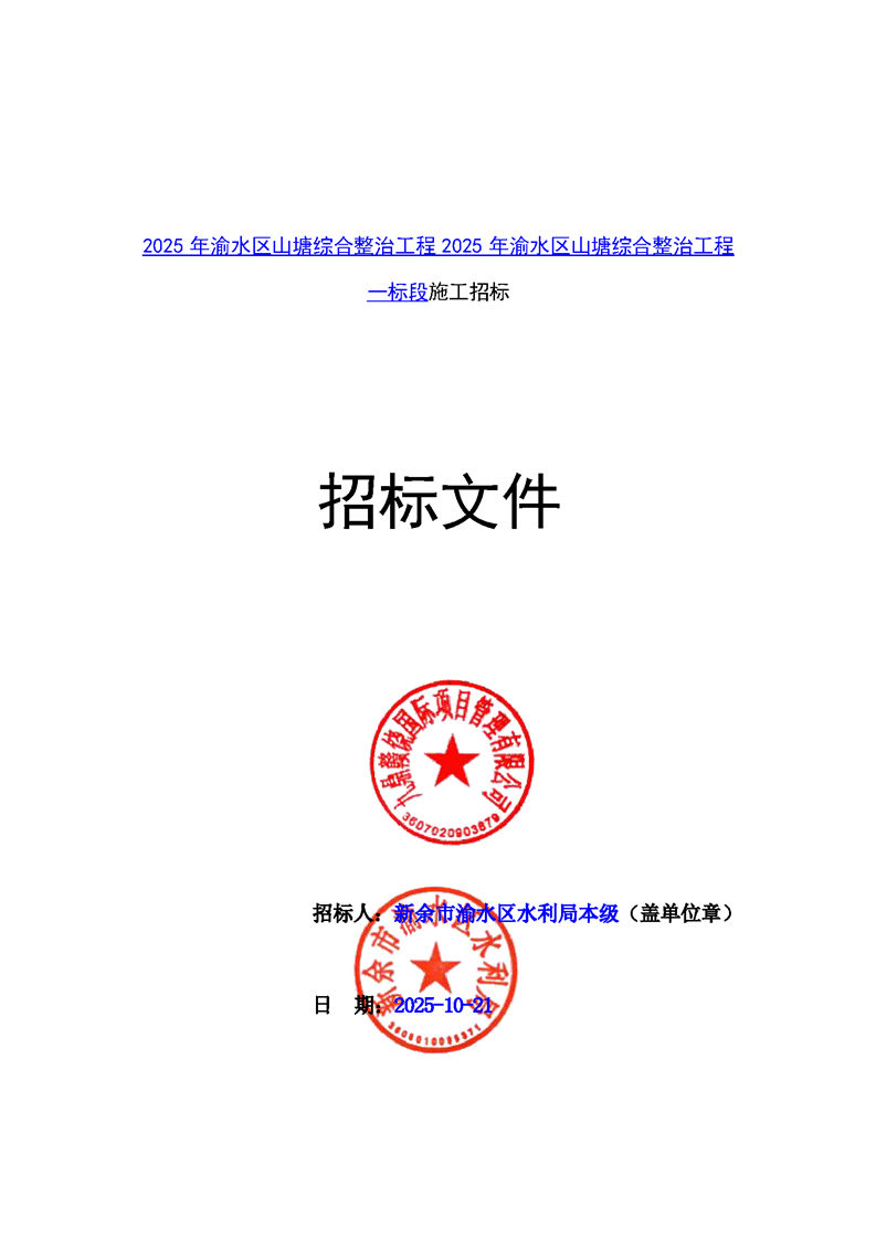 2025年渝水區山塘綜合整治工程施工招標文件預公示