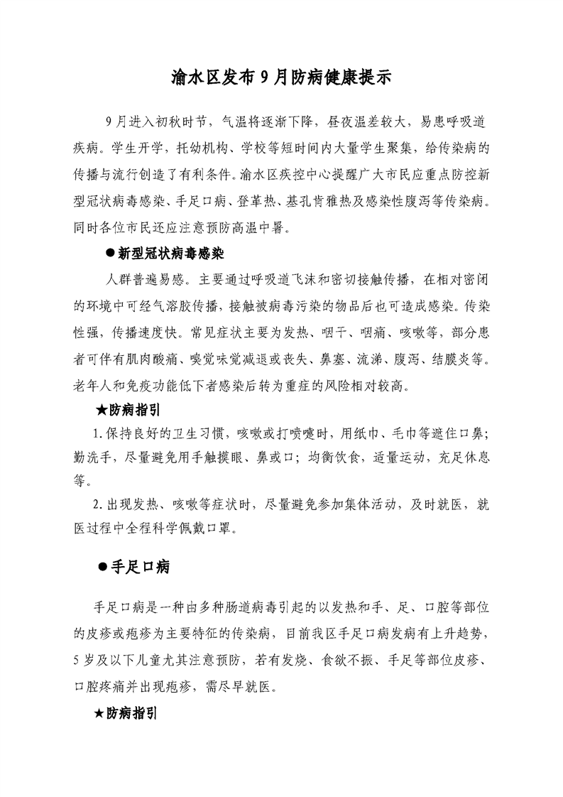 渝水區發布 9 月防病健康提示