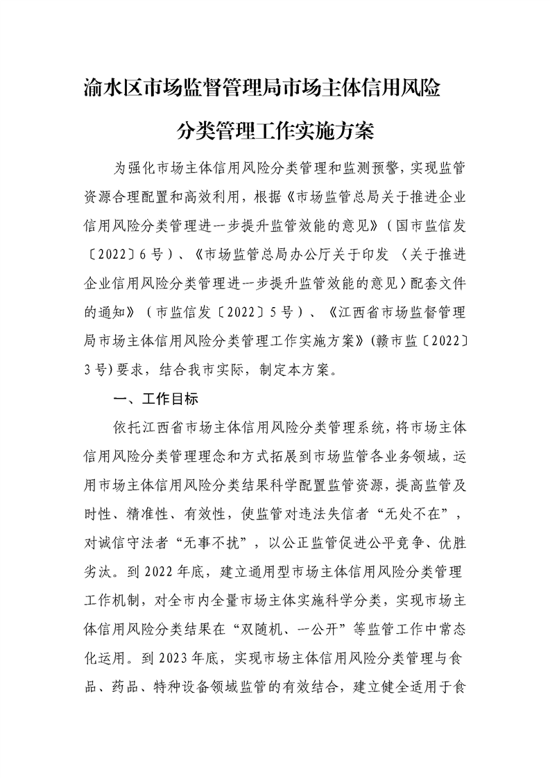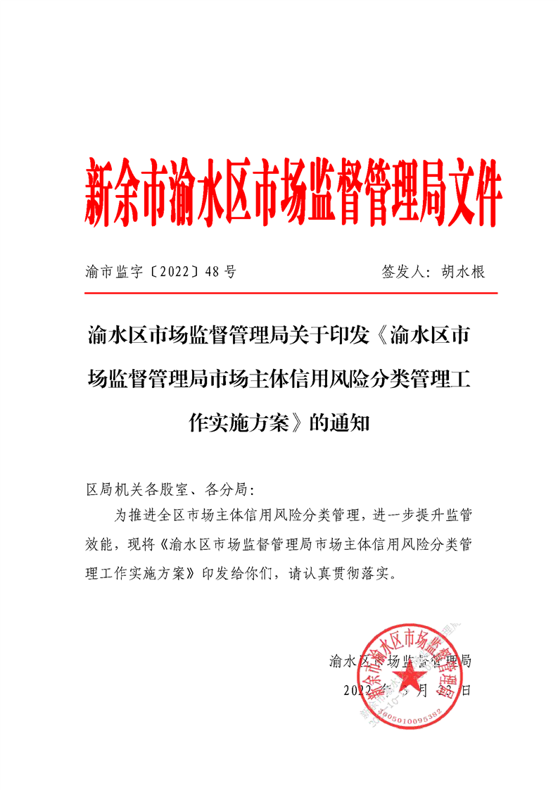 (有效)--渝市監(jiān)字〔2022〕48號(hào)--渝水區(qū)市場(chǎng)監(jiān)督管理局市場(chǎng)主體信用風(fēng)險(xiǎn)分類管理工作實(shí)施方案