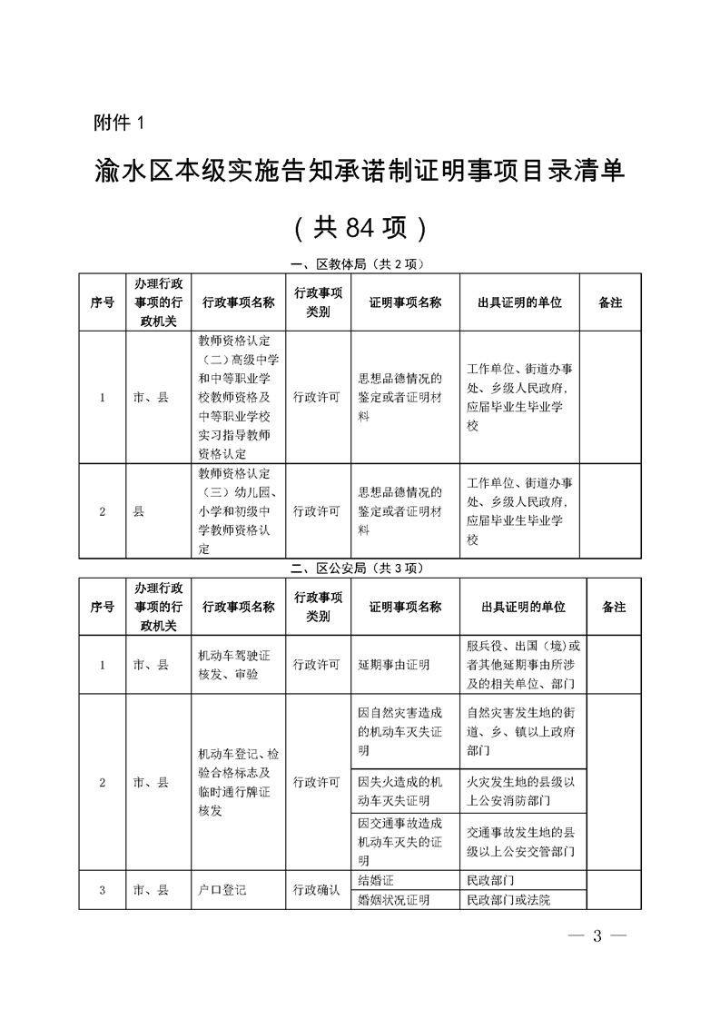 (有效)--渝司發〔2021〕8號 渝水區司法局關于印發渝水區本級實施告知承諾制證明事項目錄清單的通知