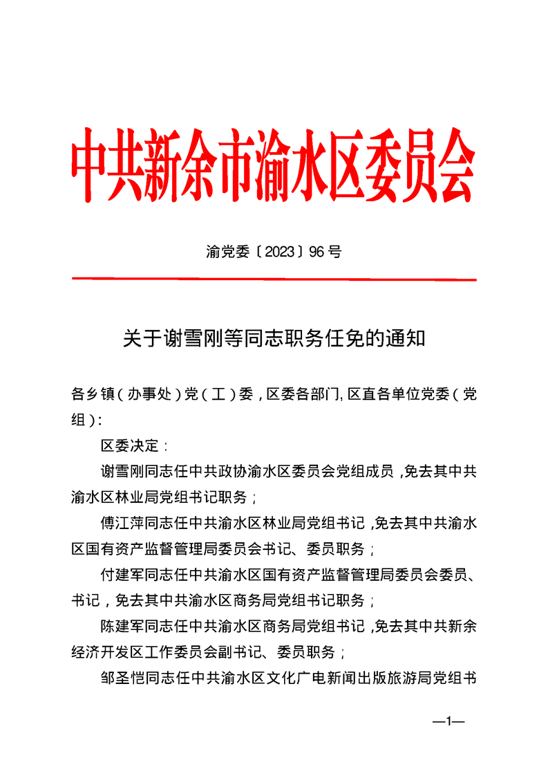 關(guān)于謝雪剛等同志職務(wù)任免的通知