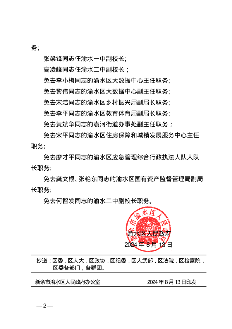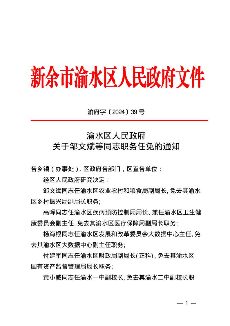 渝水區(qū)人民政府關(guān)于鄒文斌等同志職務(wù)任免的通知