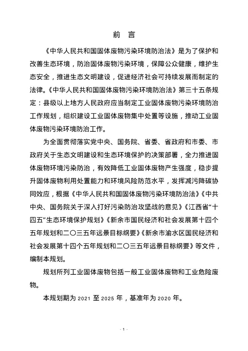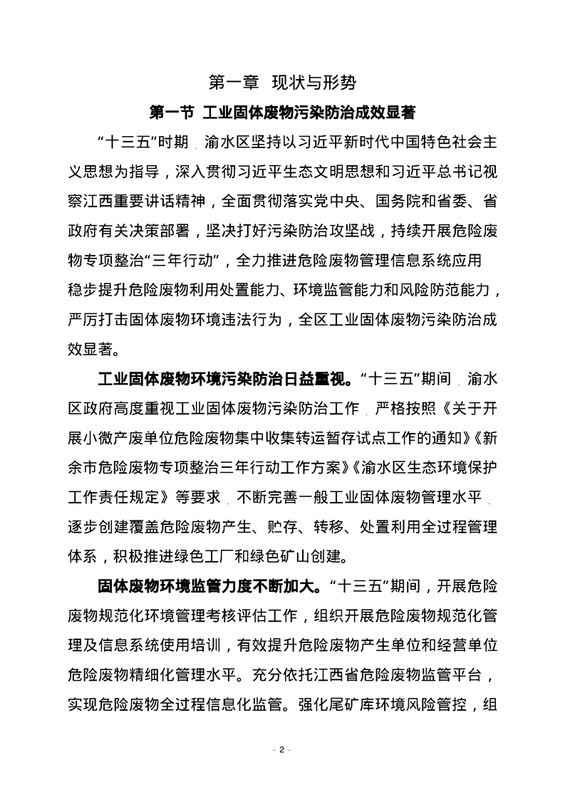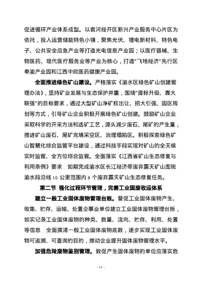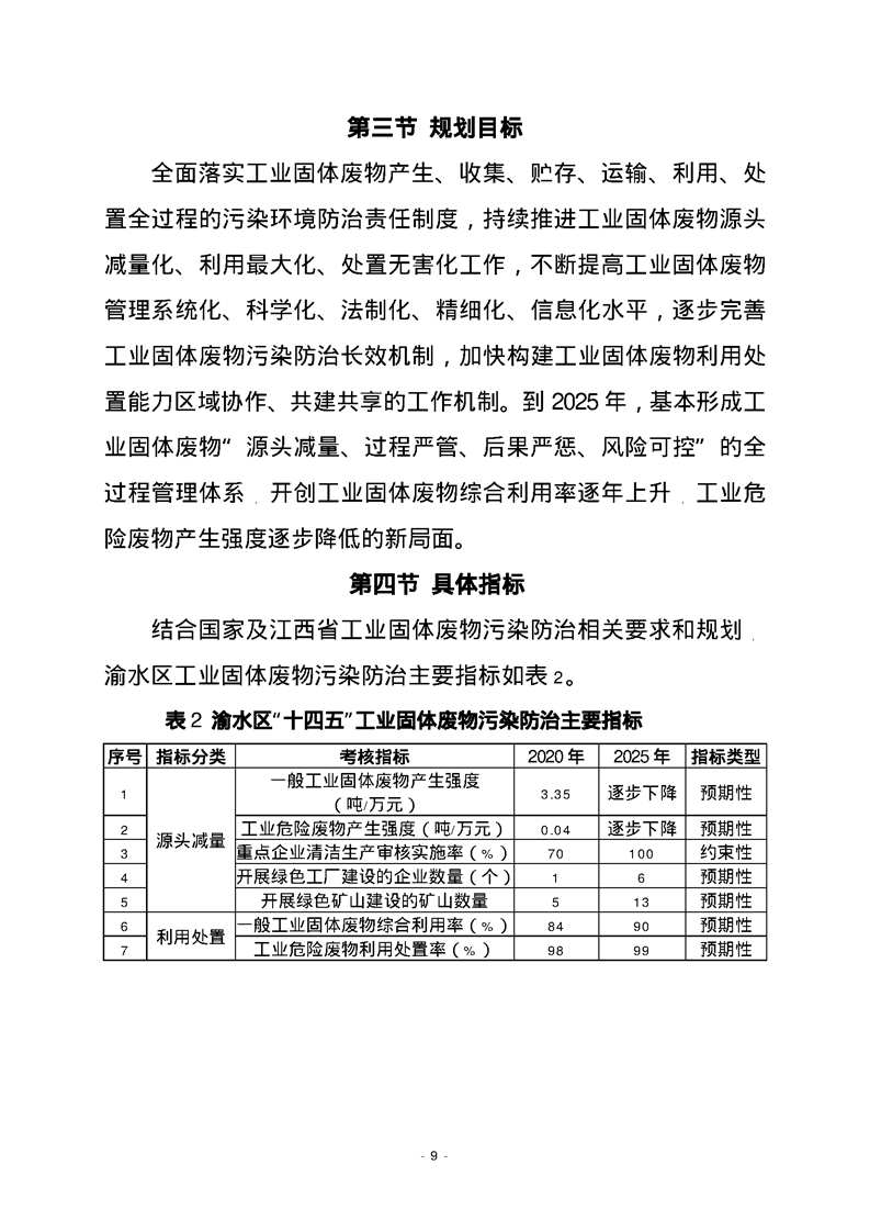 渝府發(fā)【2023】20號(hào) 渝水區(qū)人民政府關(guān)于印發(fā)渝水區(qū)“十四五”工業(yè)固體廢物污染環(huán)境防治規(guī)劃的通知
