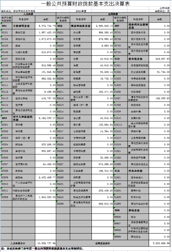 六、一般公共預(yù)算財(cái)政撥款基本支出決算表