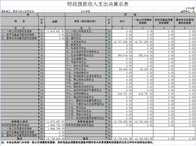 四、財(cái)政撥款收入支出決算總表