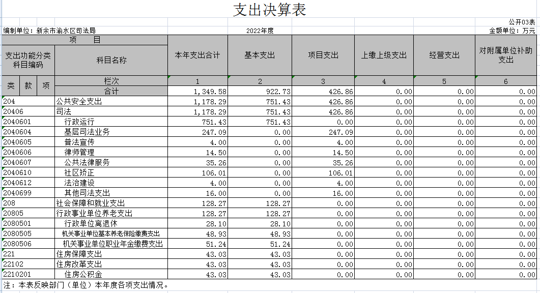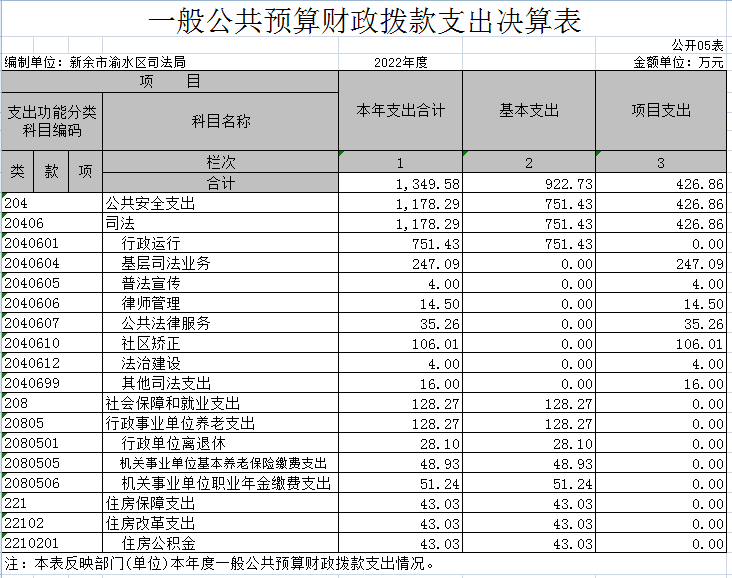 渝水區司法局2022年度部門決算