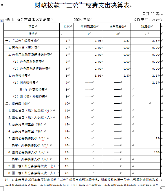 本部門2024年度財政撥款“三公”經(jīng)費(fèi)支出全年預(yù)算數(shù)2.57萬元,決算數(shù)2.57萬元,完成全年預(yù)算的100.00%;決算數(shù)比上年減少0.55萬元,下降17.64%,主要原因是本著過緊日子的原則,厲行節(jié)約。詳見《財政撥款“三公”經(jīng)費(fèi)支出決算表》。