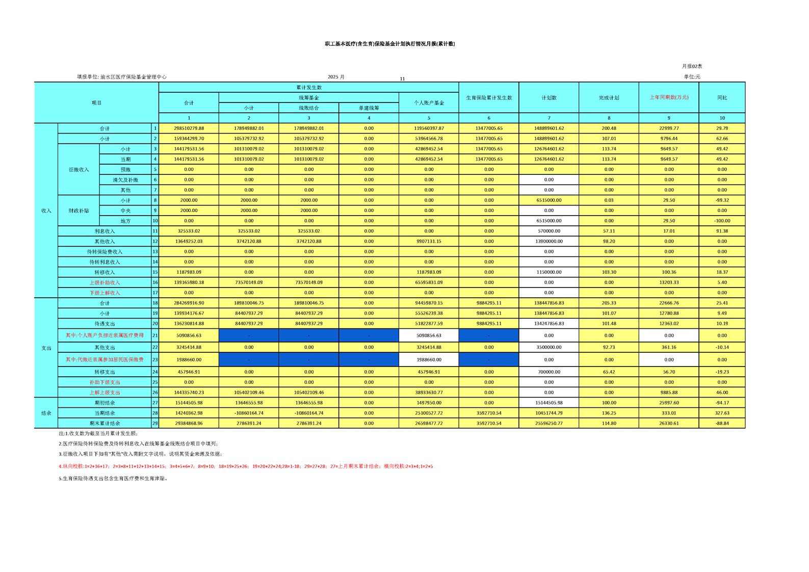 2025年1-11月渝水區基本醫療保險基金運行情況