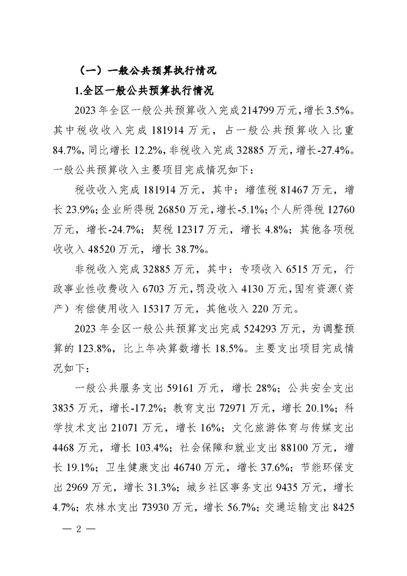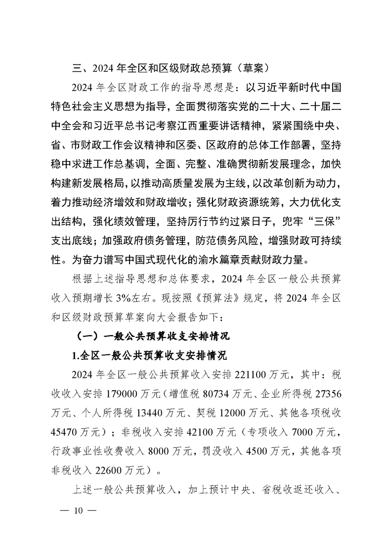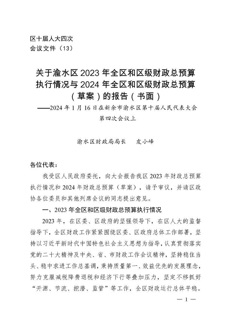 渝水區(qū)2023年全區(qū)和區(qū)級(jí)財(cái)政總預(yù)算執(zhí)行情況與2024年全區(qū)和區(qū)級(jí)財(cái)政總預(yù)算(草案)的報(bào)告