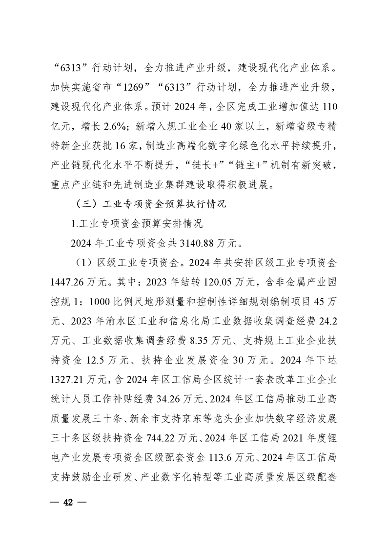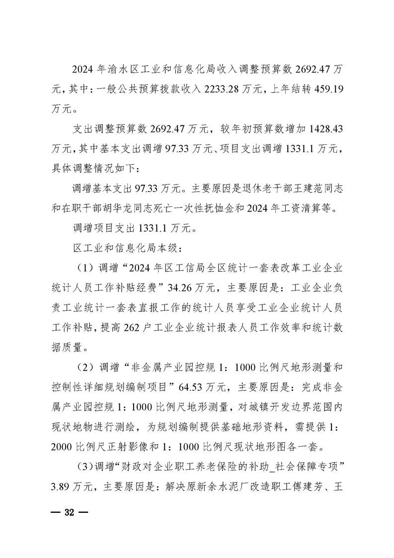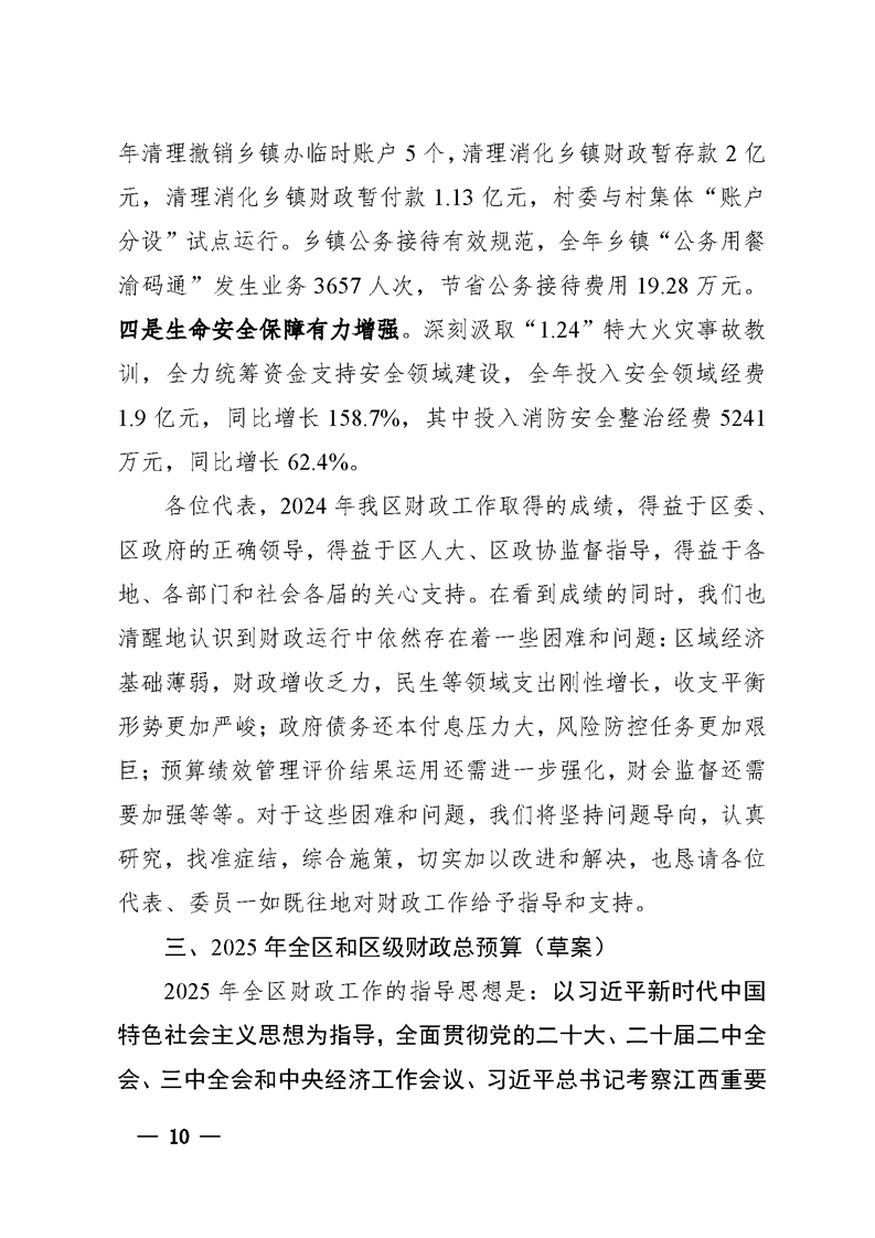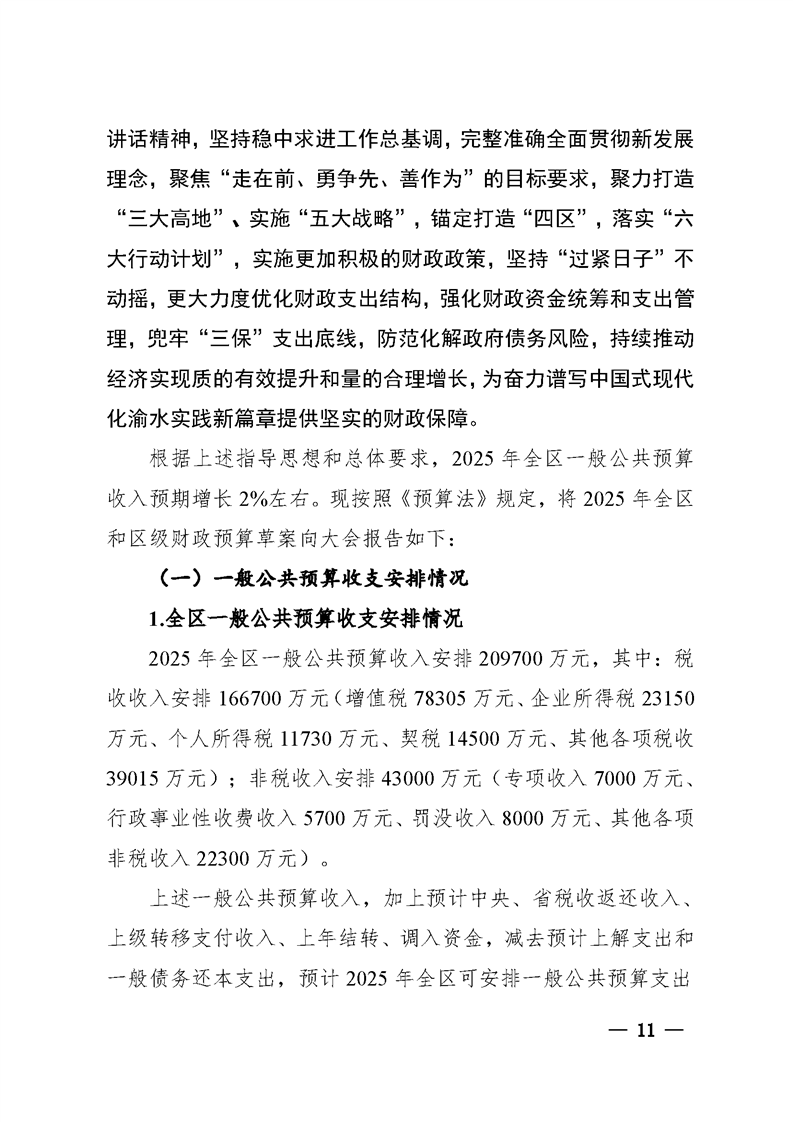 關于渝水區2024年全區和區級財政總預算執行情況與2025年全區和區級財政總預算(草案)
