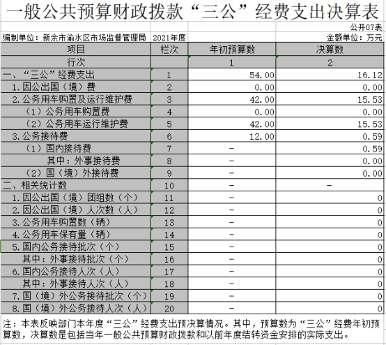 六、“三公”經費:按照黨中央、國務院有關文件及部門預算管理有關規定,“三公”經費包括因公出國(境)費、公務用車購置及運行費和公務接待費。(1)因公出國(境)費,指單位工作人員公務出國(境)的住宿費、旅費、伙食補助費、雜費、培訓費等支出。(2)公務用車購置及運行費,指單位公務用車購置費及租用費、燃料費、維修費、過路過橋費、保險費、安全獎勵費用等支出。公務用車指用于履行公務的機動車輛,包括領導干部專車、一般公務用車和執法執勤用車。(3)公務接待費,指單位按規定開支的各類公務接待(含外賓接待)支出。