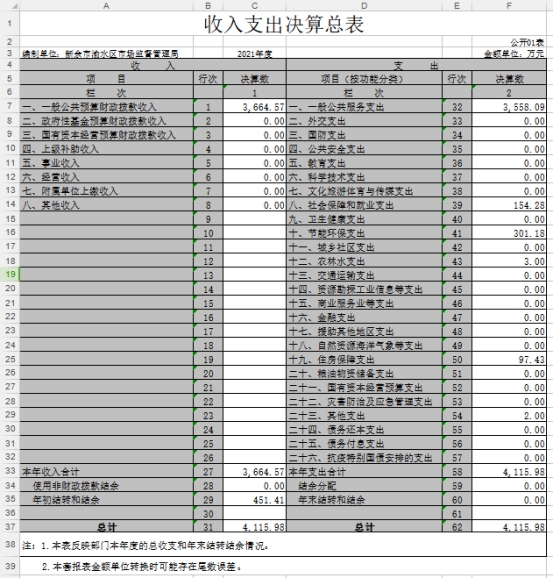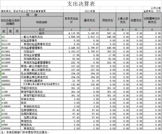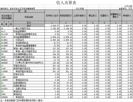 納入本套部門決算匯編范圍的單位共 1 個,包括:渝水區市場監督管理局。