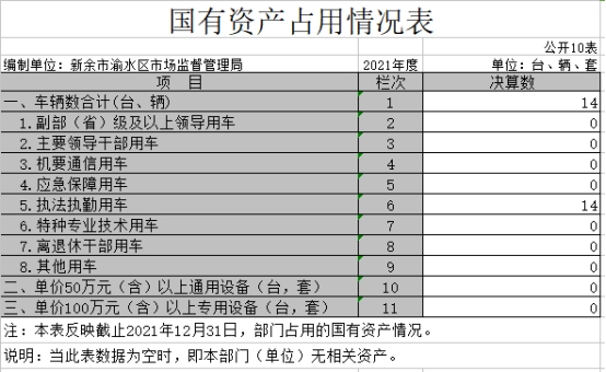 截止2021年12月31日,本部門(單位)國有資產占用情況見公開10表《國有資產占用情況表》。其中車輛中的其他用車主要是執法用車。