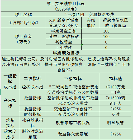 為確保“三城同創”交通整治工作開展順利,2025年區財政預算安排工作經費100萬元。