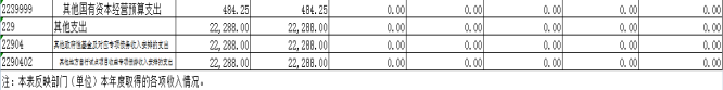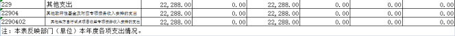 (九)其他支出年初預算數為22288萬元,決算數為22288萬元,完成年初預算的 100%。
