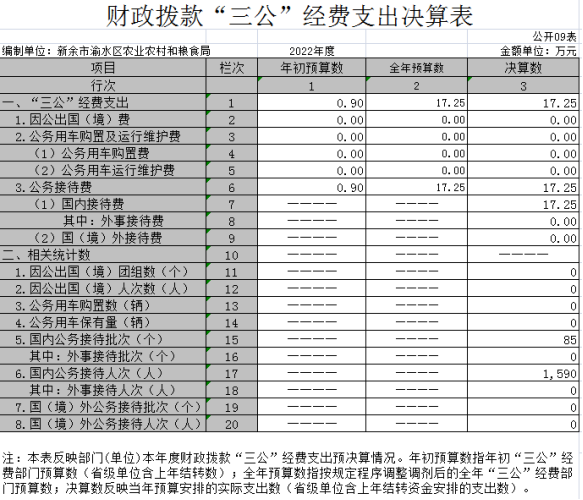 本單位2022年度財政撥款“三公”經費支出全年預算數為 17.25 萬元,決算數為 17.25 萬元,完成全年預算的 100 %,決算數較2021年減少0.95 萬元,下降5.21 %,其中: