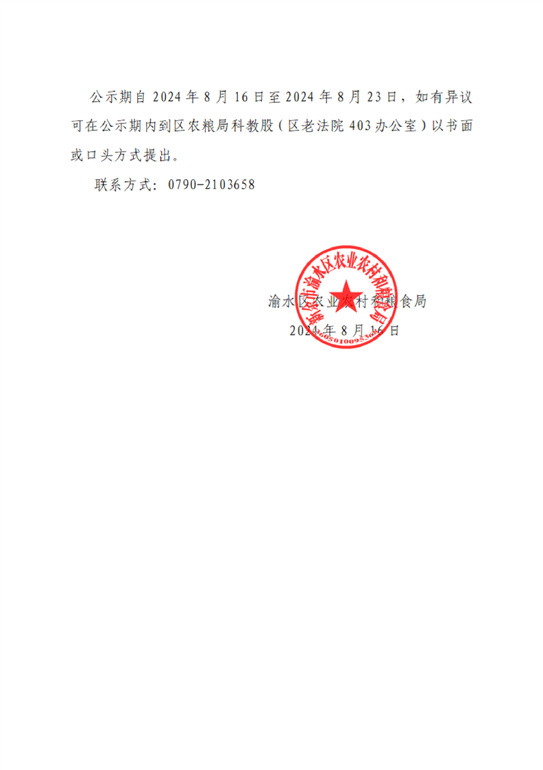 信息索取號: 3605020001-2024-04935 發布日期: 2024-08-16 責任部門: 渝水區農業農村和糧食局