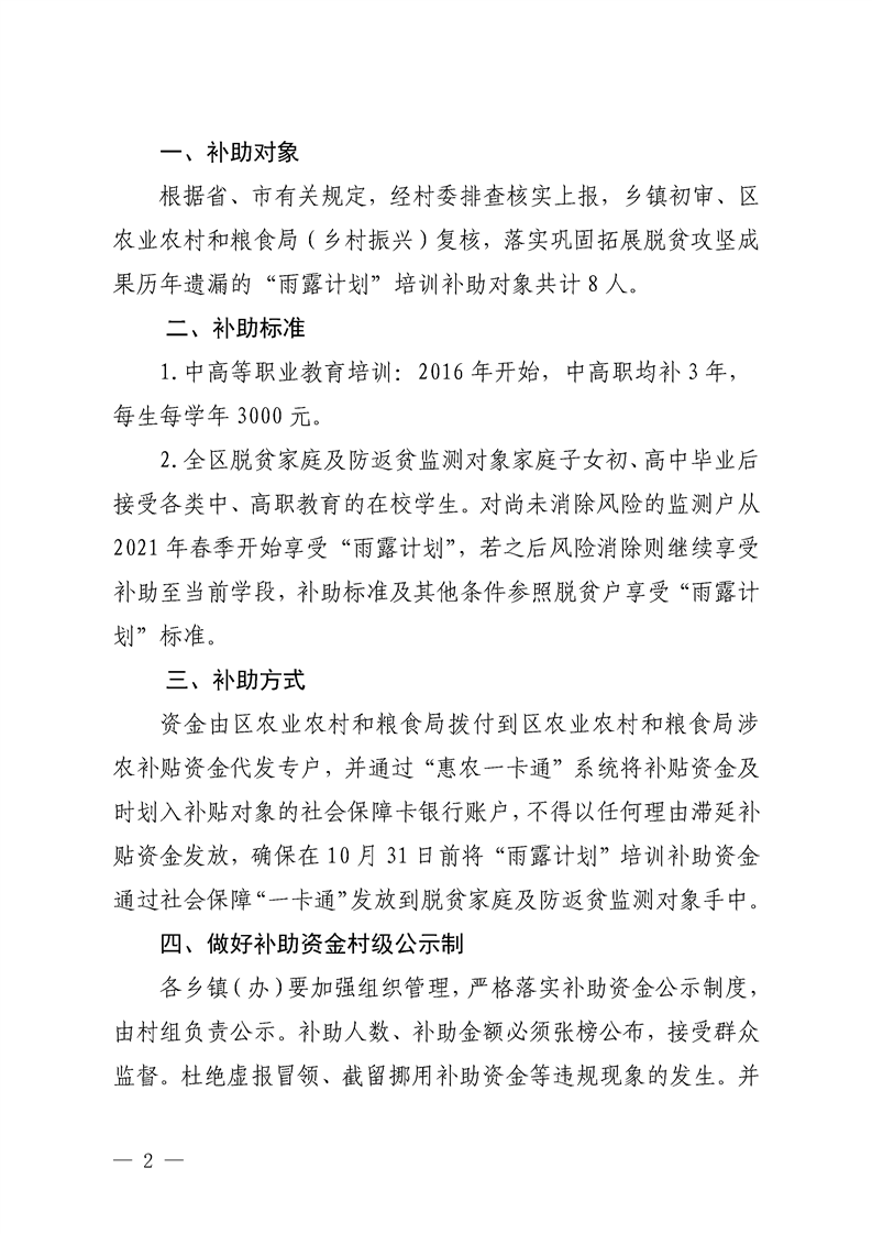 渝水區(qū)農(nóng)業(yè)農(nóng)村和糧食局關(guān)于補(bǔ)發(fā)歷年遺漏的“雨露計(jì)劃’培訓(xùn)人員補(bǔ)助資金的通知