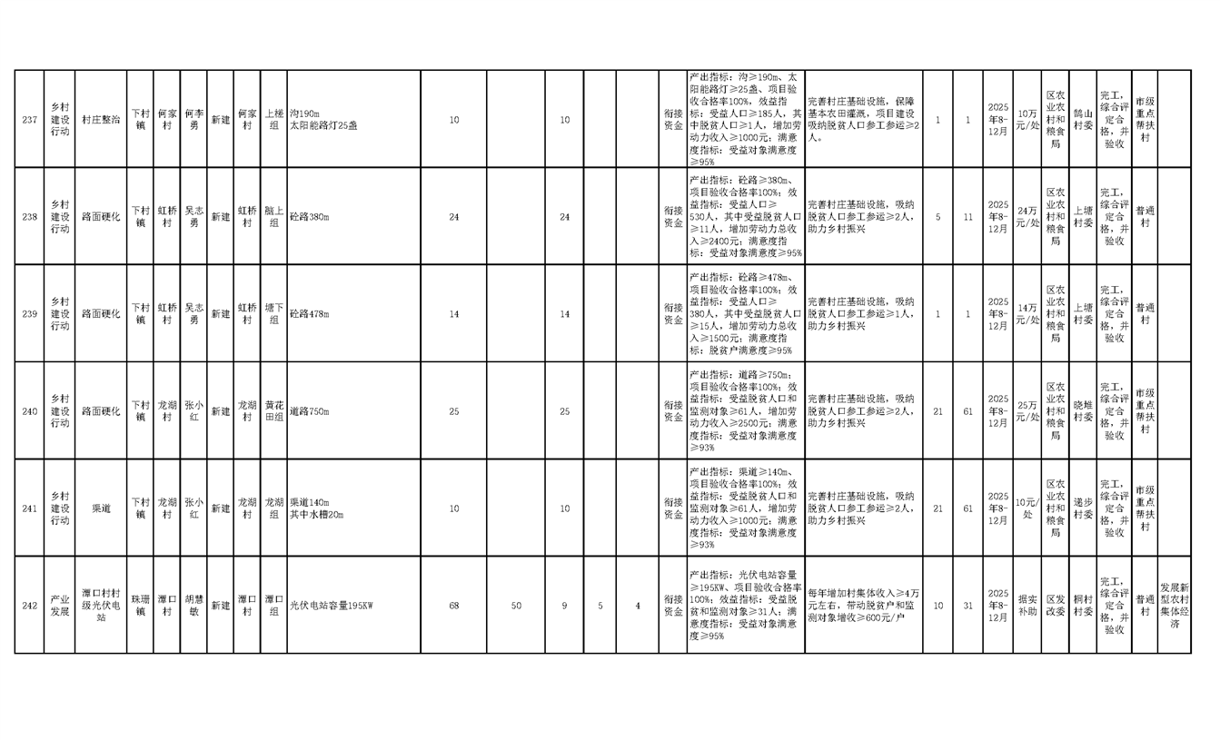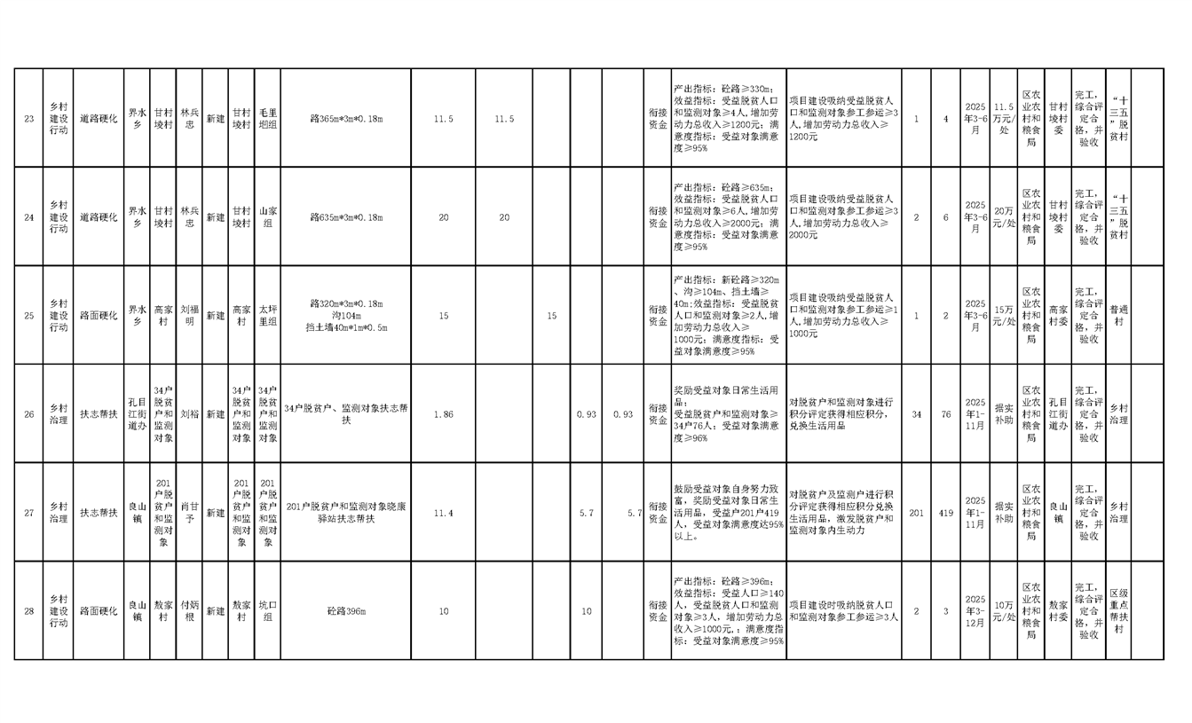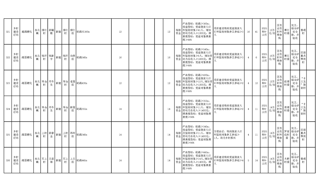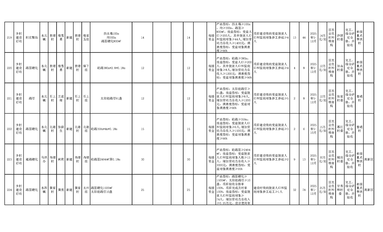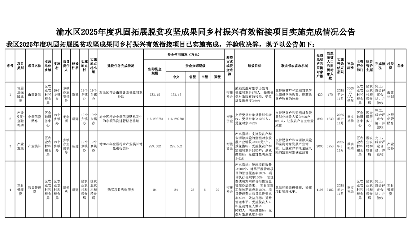 渝水區2025年度財政銜接推進鄉村振興補助資金項目年度完成情況公示