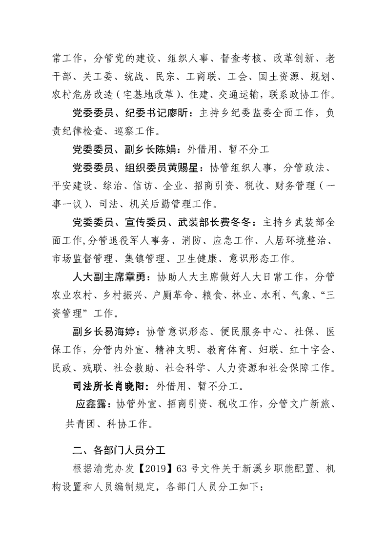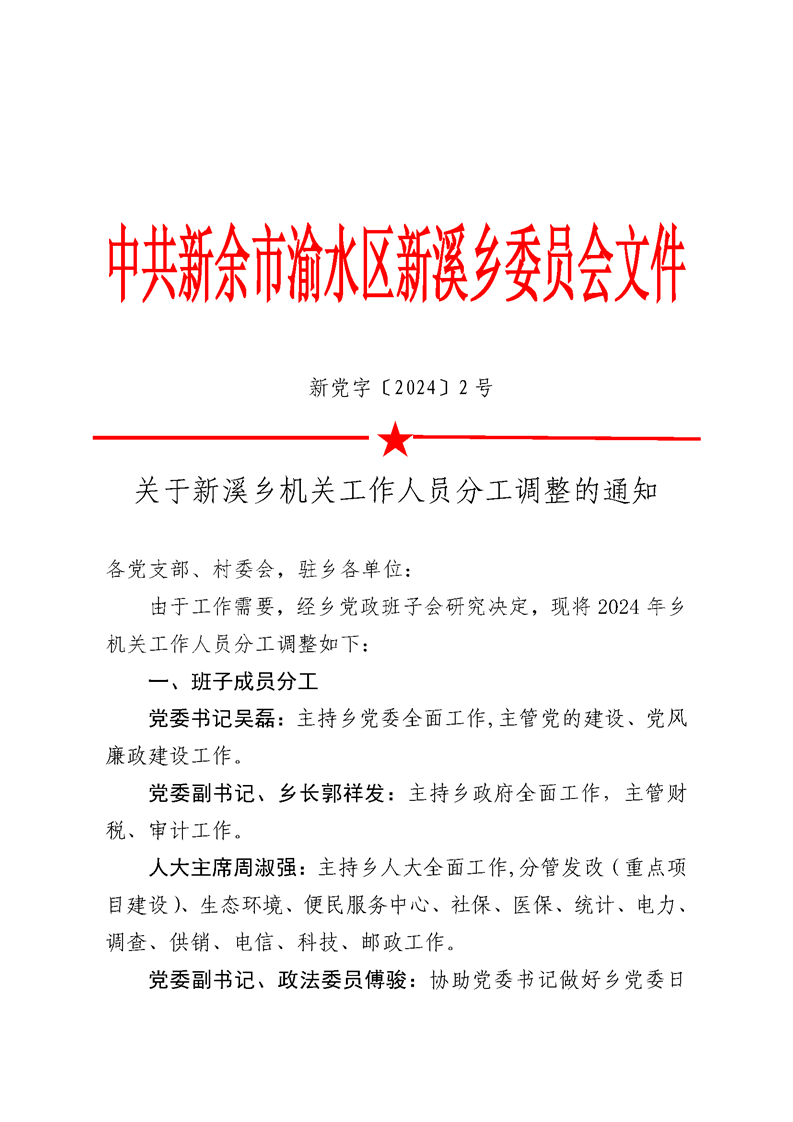 新溪鄉(xiāng)機(jī)關(guān)工作人員分工調(diào)整
