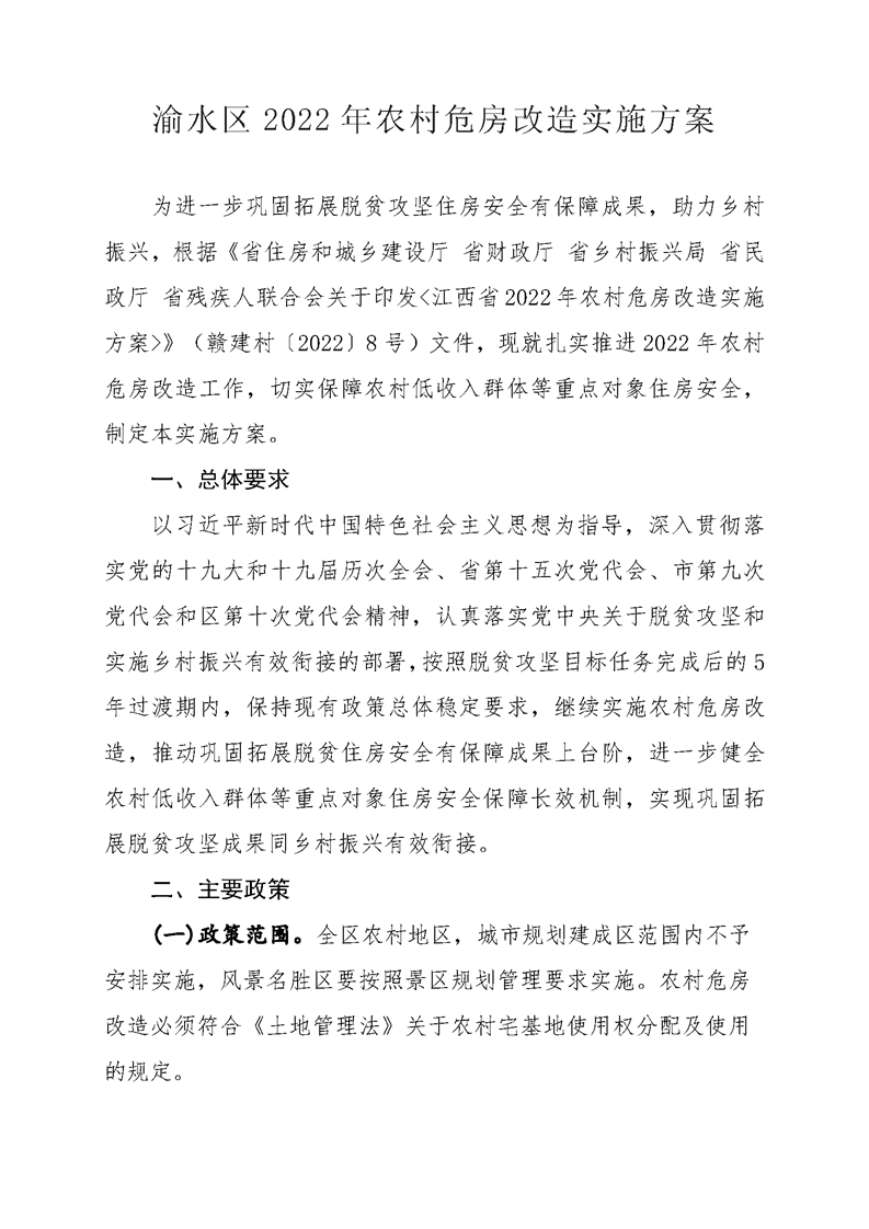 渝水區(qū)2022年農(nóng)村危房改造實(shí)施方案