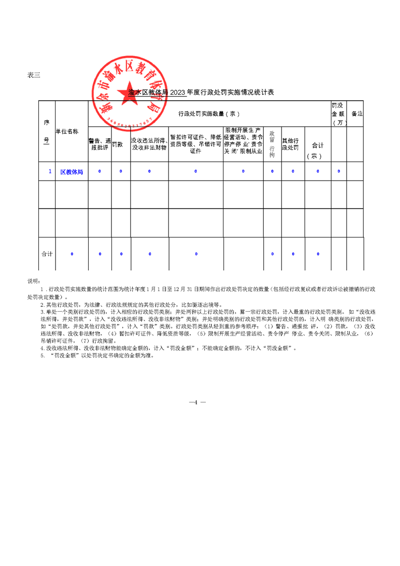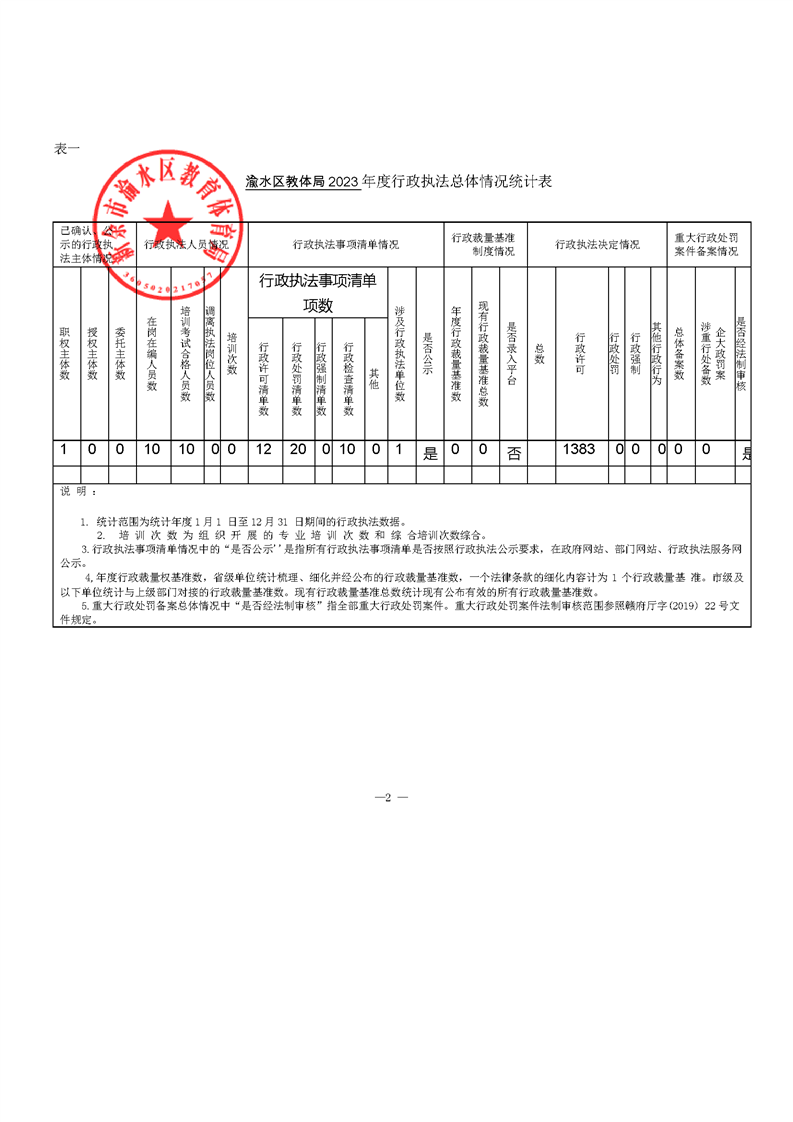 渝水區教體局2023年度行政執法數據年報
