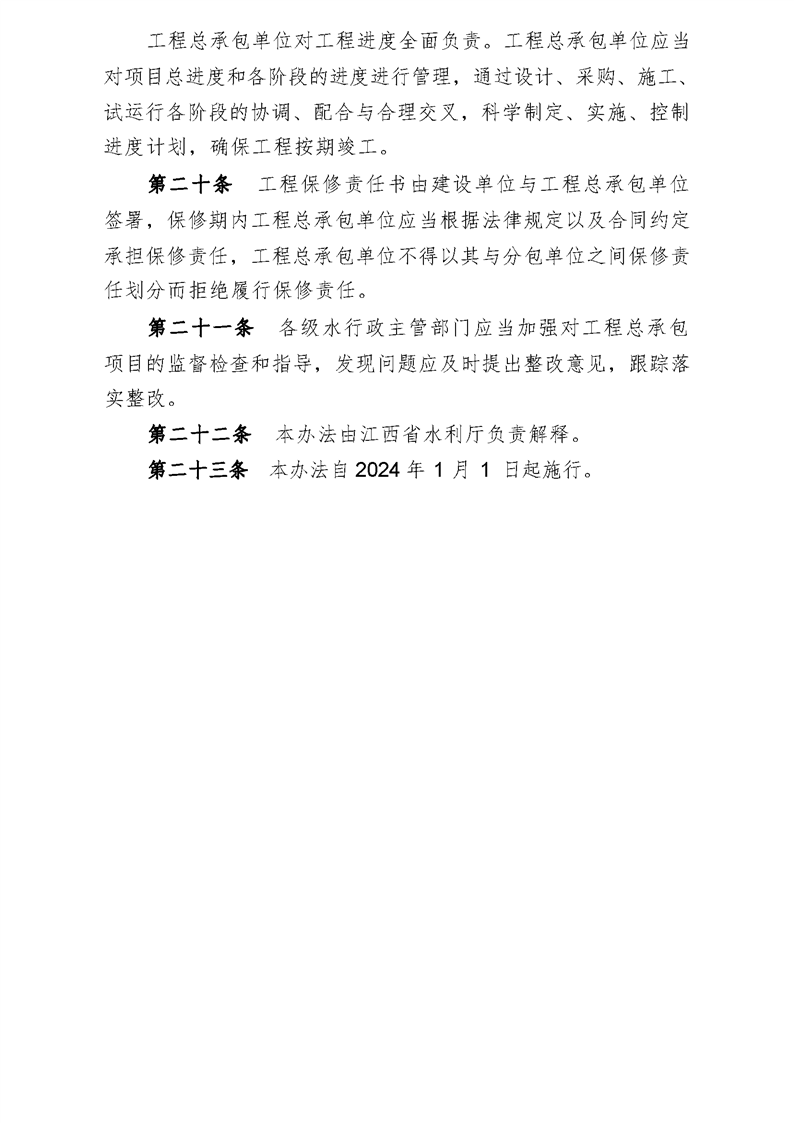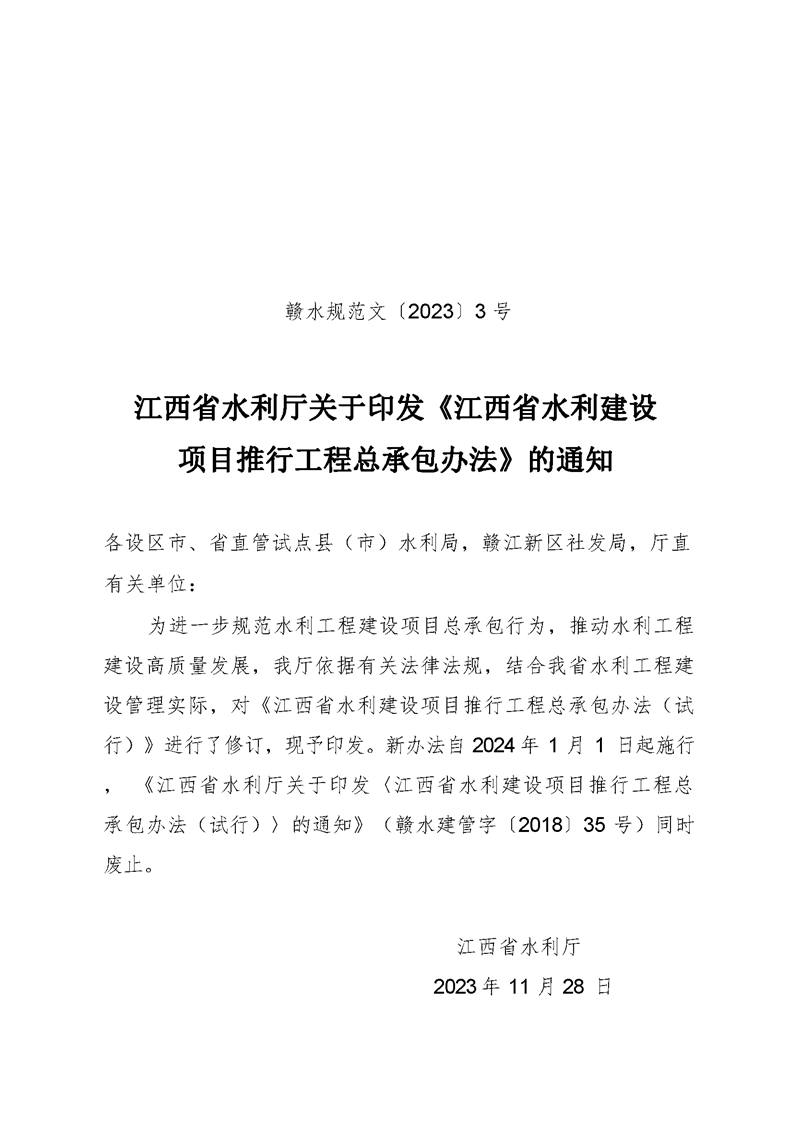 江西省水利廳關于印發《江西省水利建設項目推行工程總承包辦法》的通知(贛水規范文〔2023〕3 號)