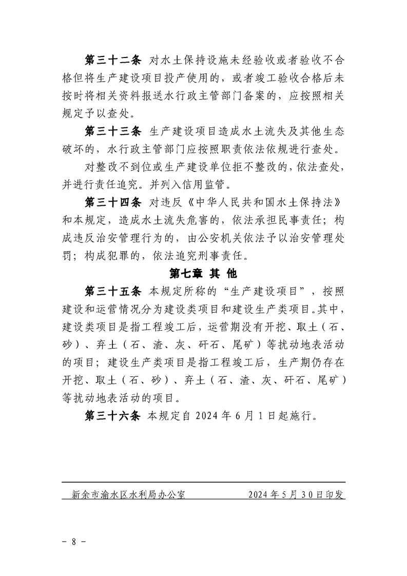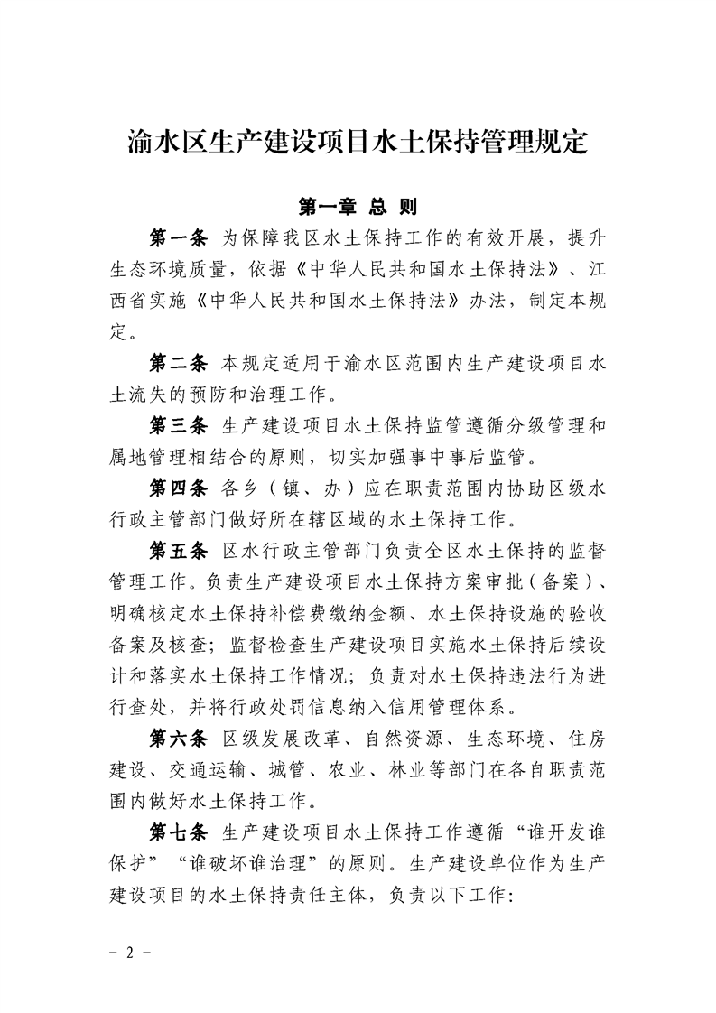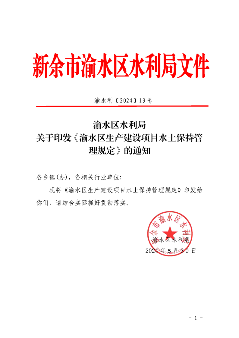 渝水區水利局關于印發《渝水區生產建設項目水土保持管理規定》的通知