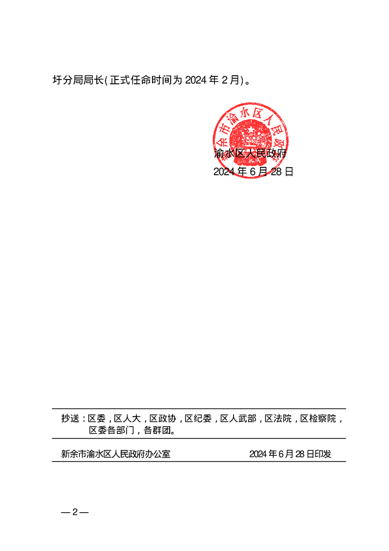渝水區(qū)人民政府關(guān)于李歡歡等同志職務(wù)任免的通知