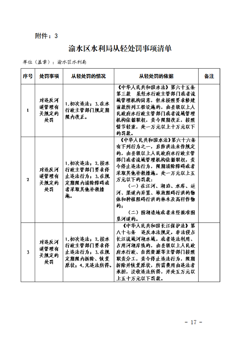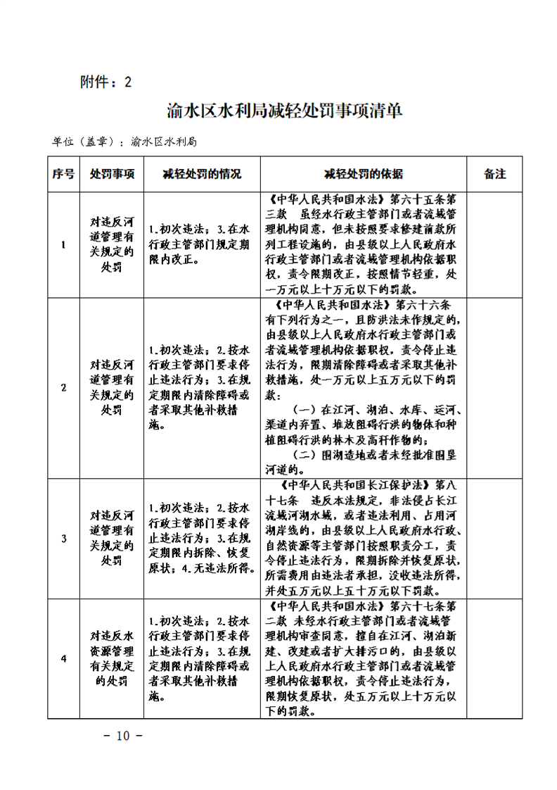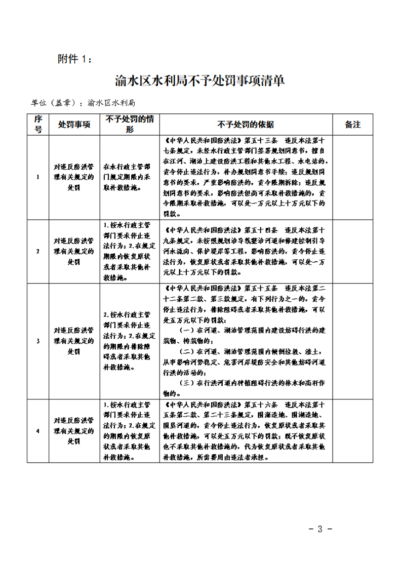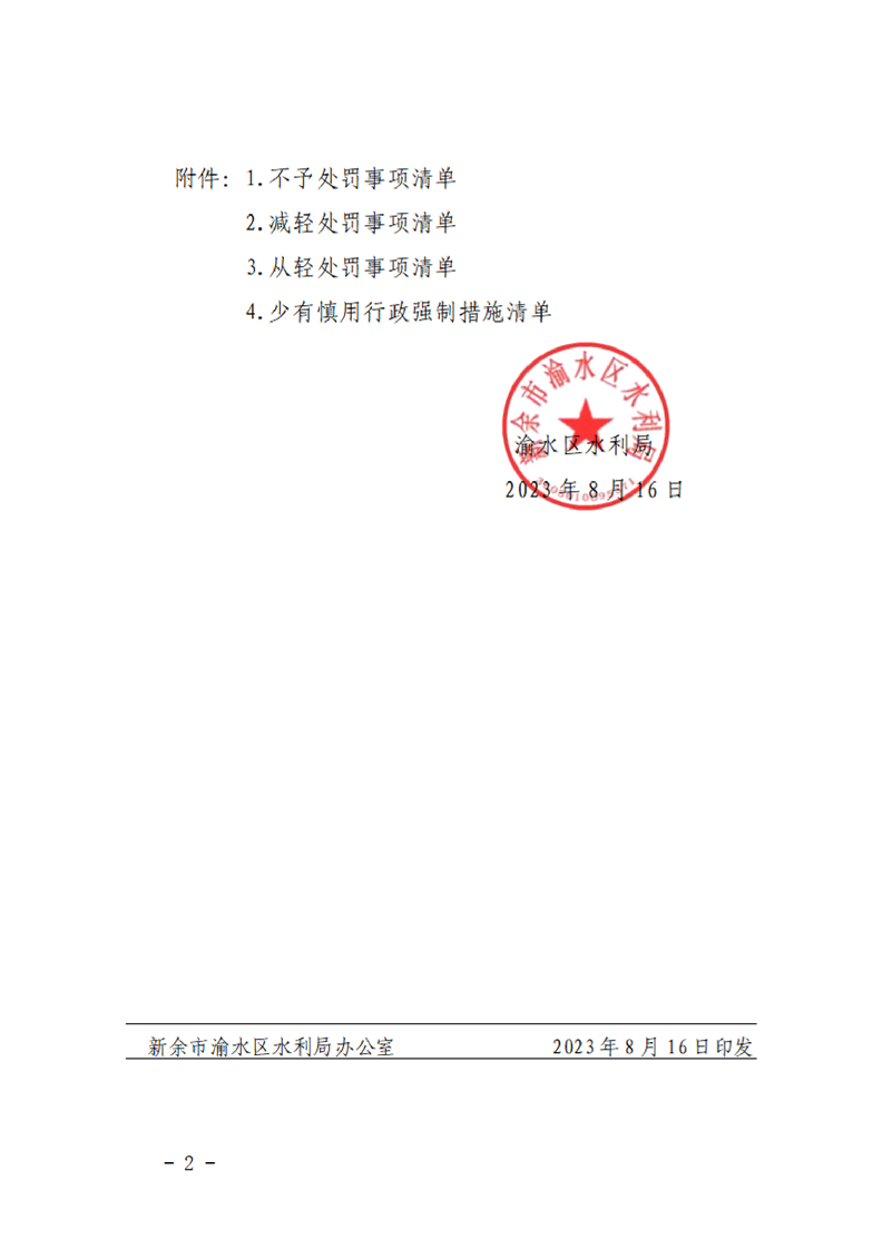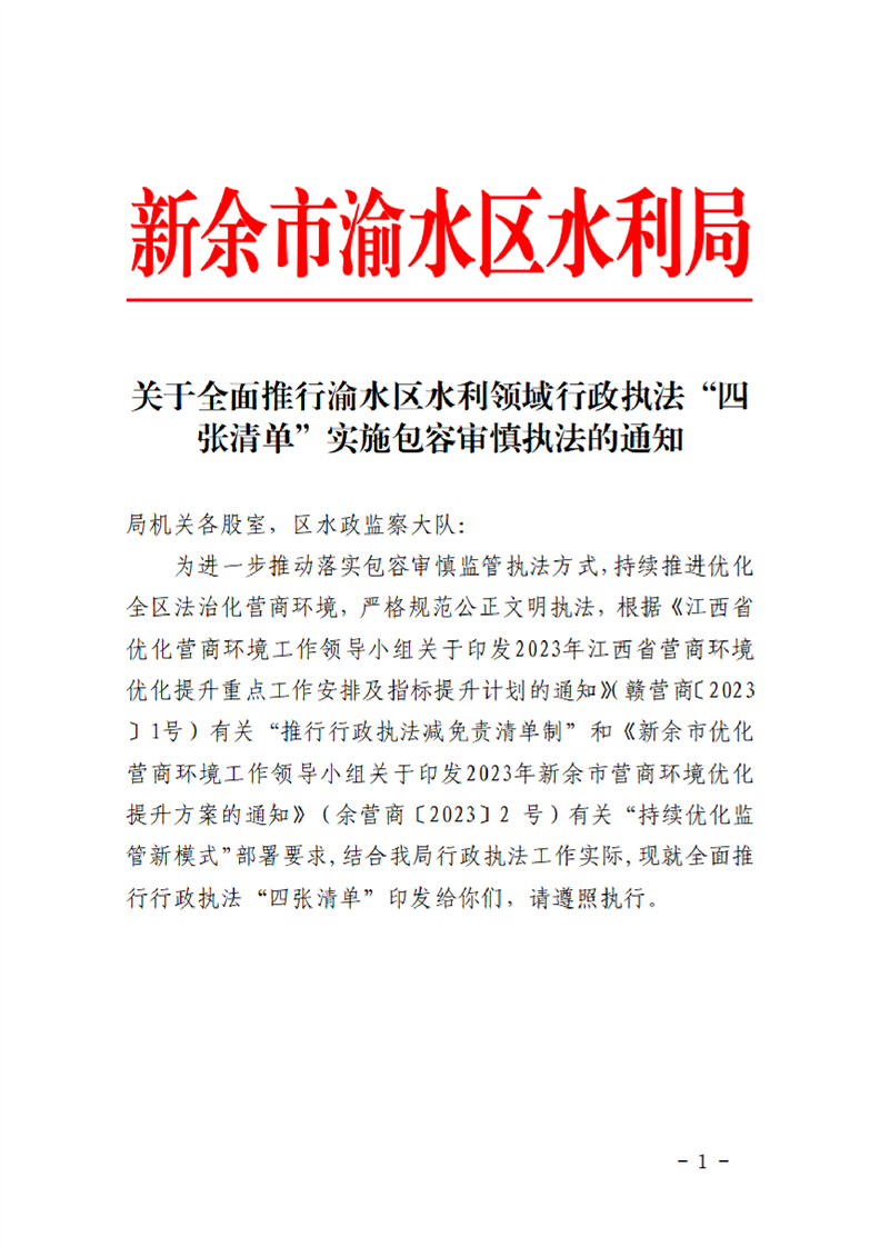(渝水區水利局)關于全面推行渝水區水利領域行政執法“四張清單”實施包容審慎執法的通知