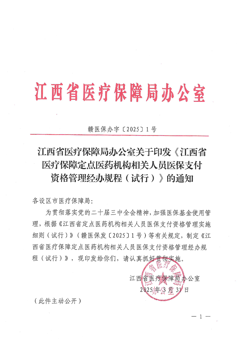 轉發(文件有效)《江西省醫療保障定點醫藥機構相關人員醫保支付資格管理經辦規程(試行)》的通知