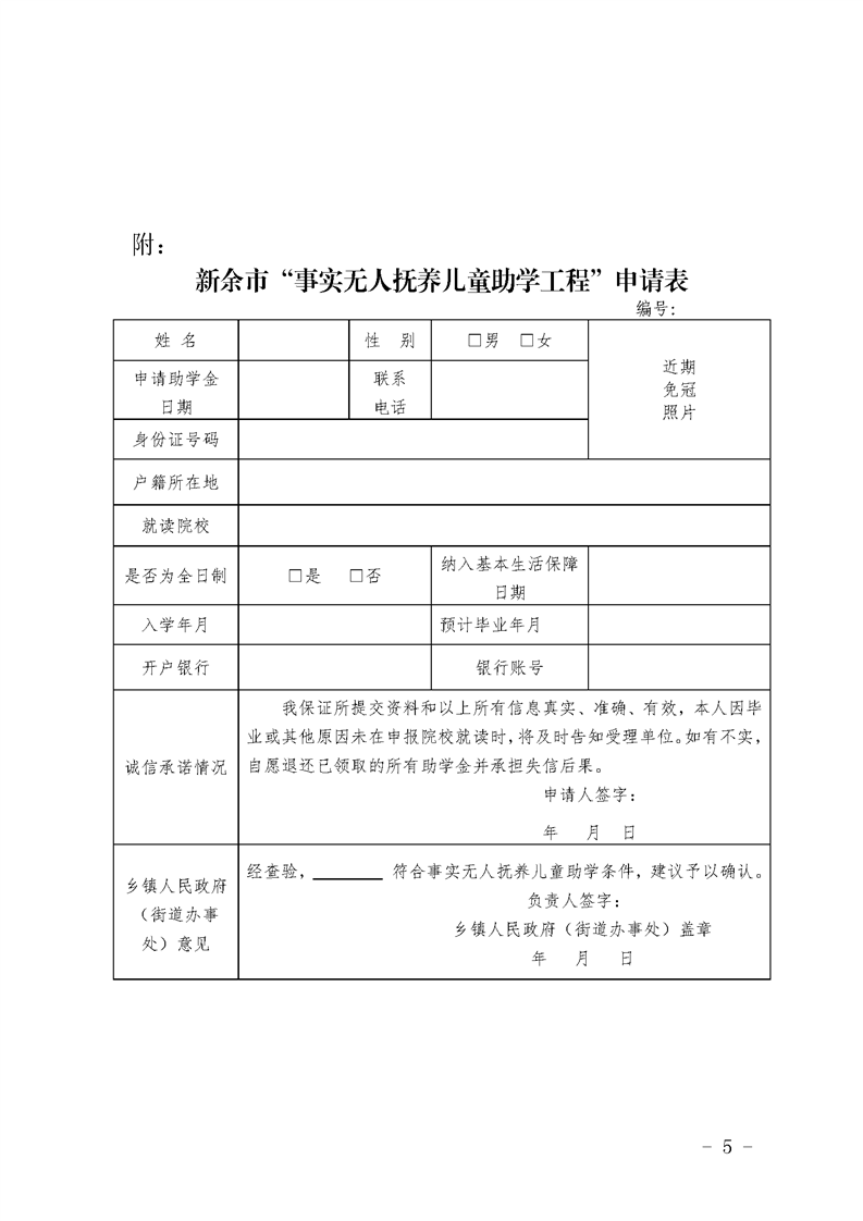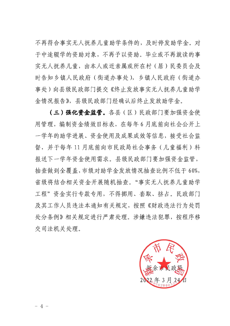 新余市民政局關于建立事實無人撫養兒童助學保障制度的通知