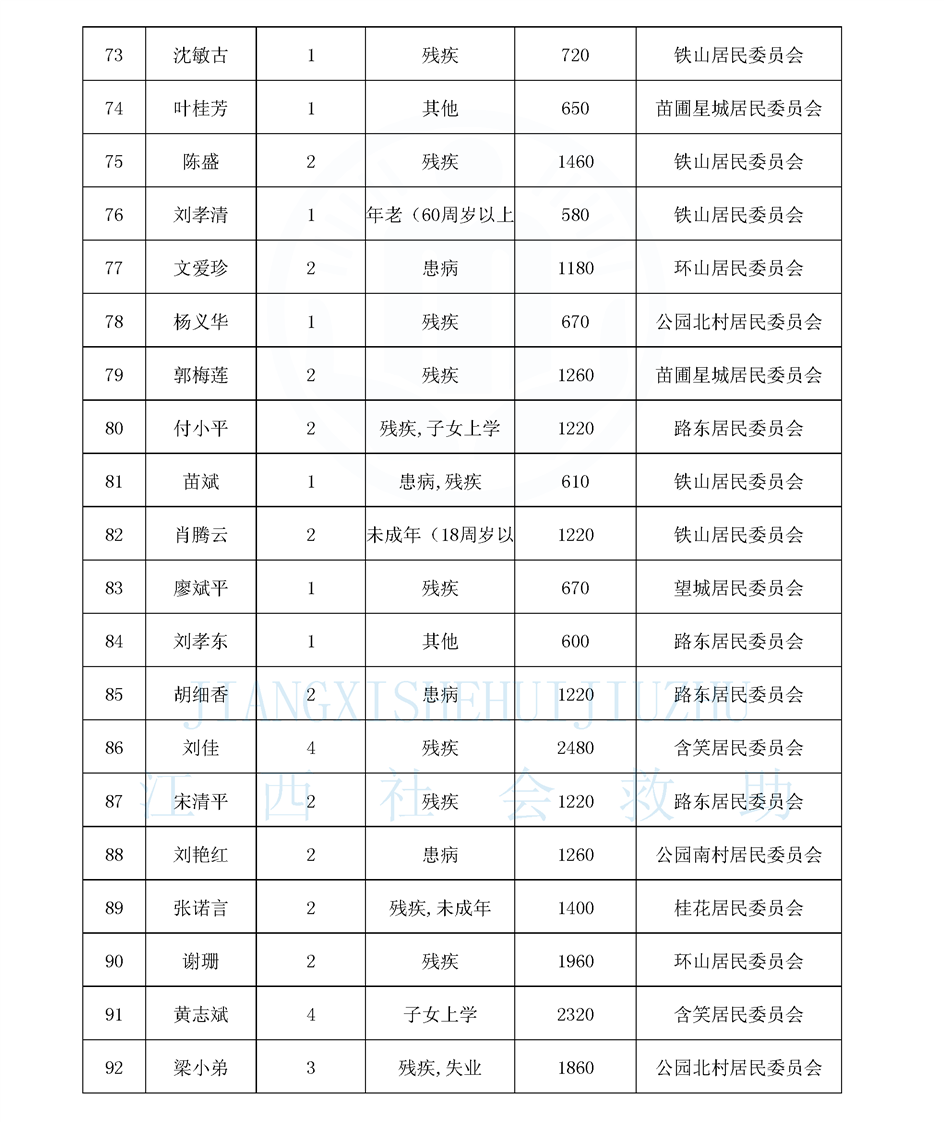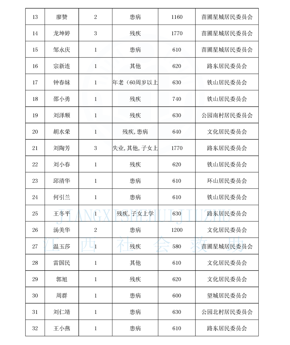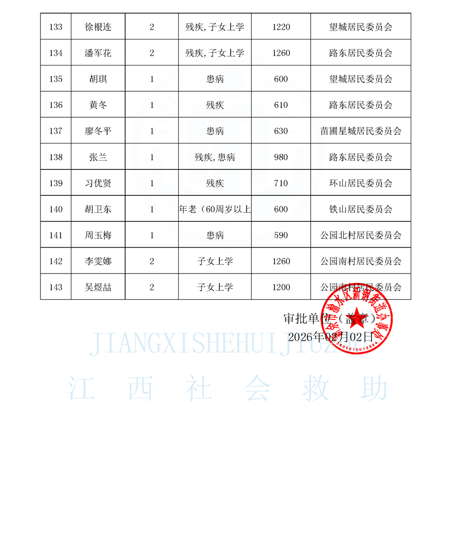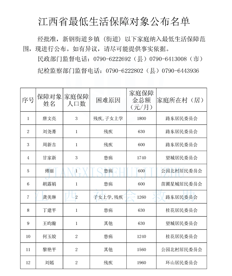 新鋼街道2026年2月份最低生活保障對象公示名單