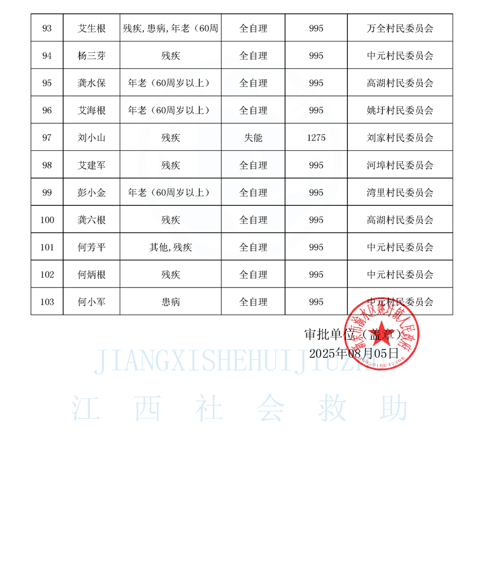 2025年8月特困待長期公布名單