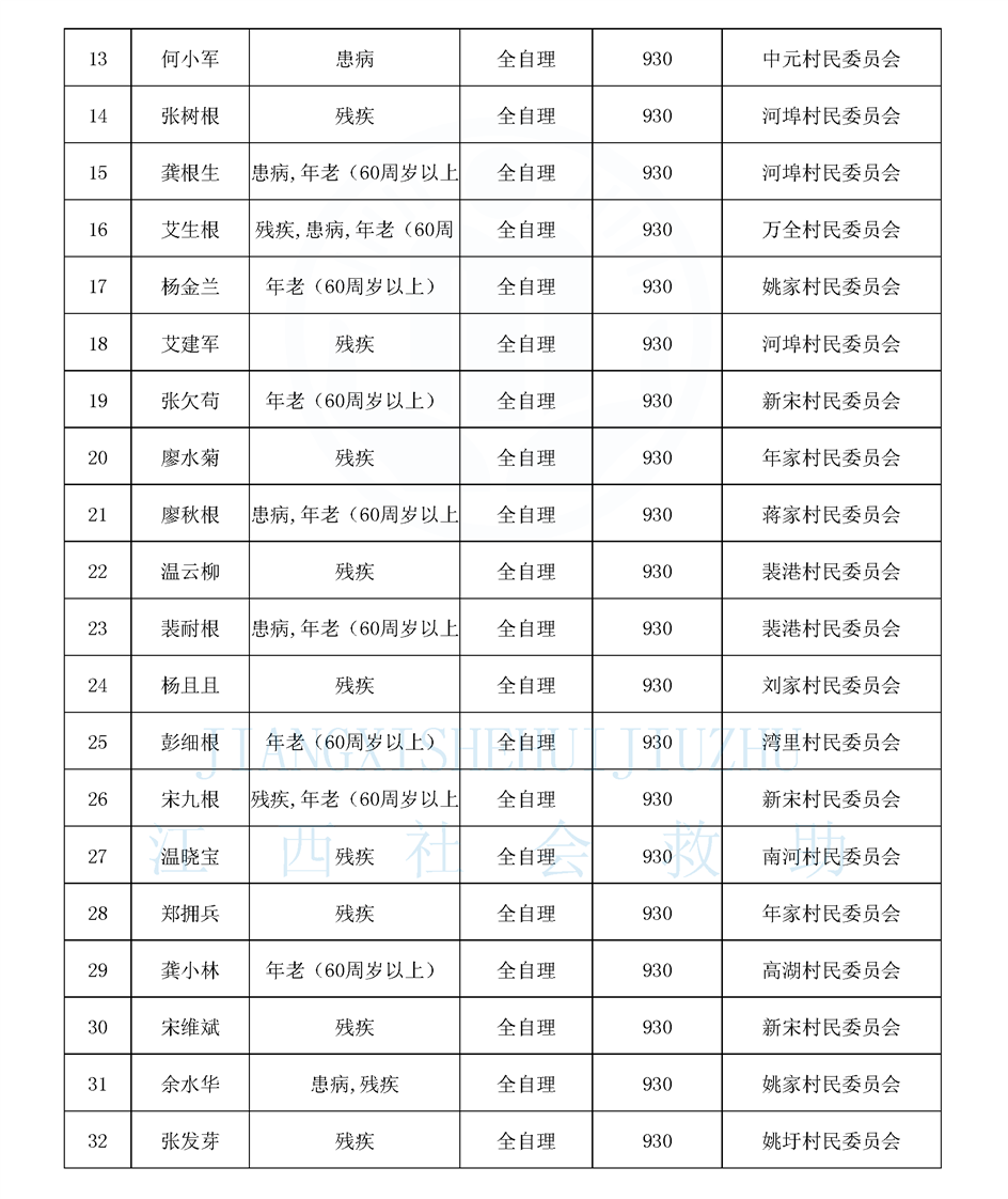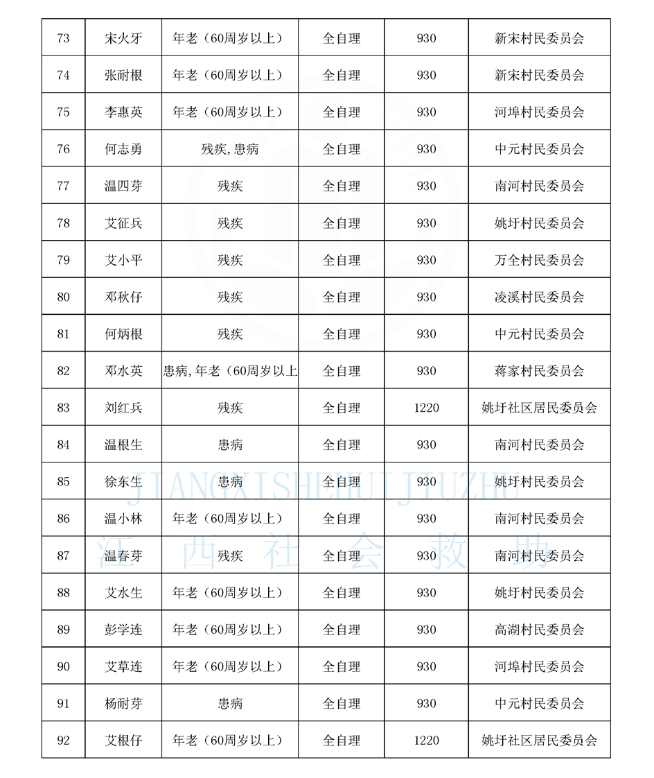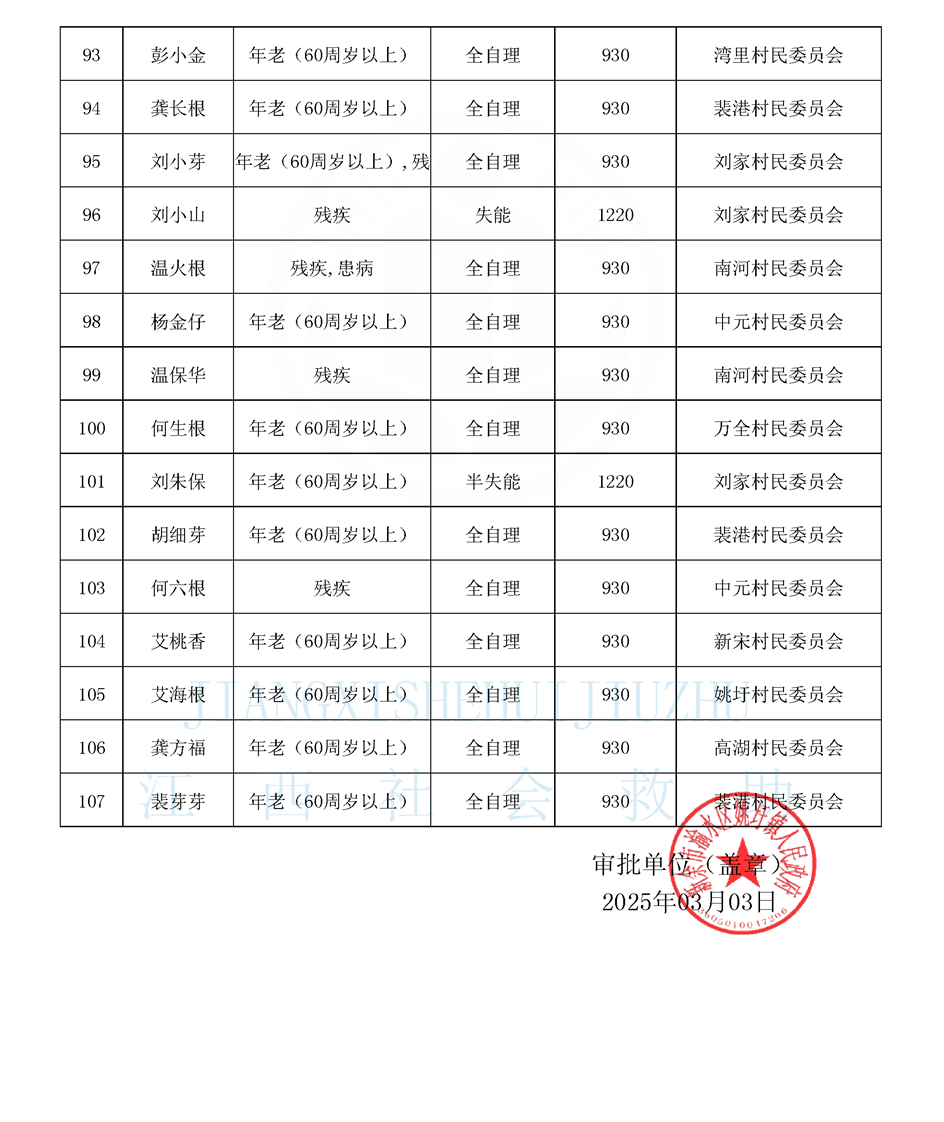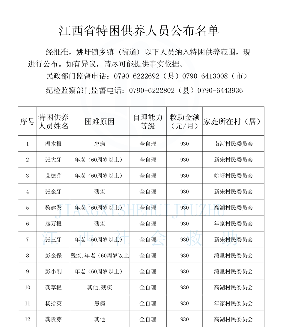 2025年3月姚圩鎮特困公示