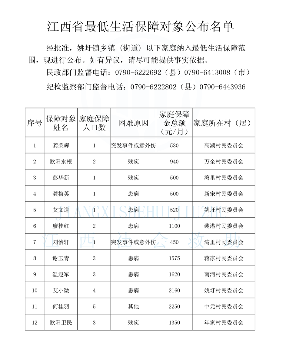 2025年12月低保待長期公布名單