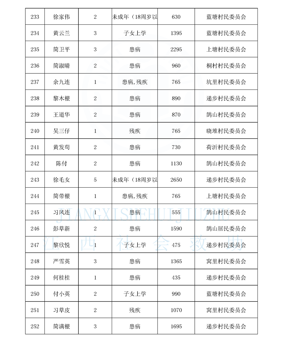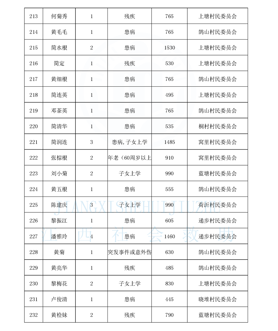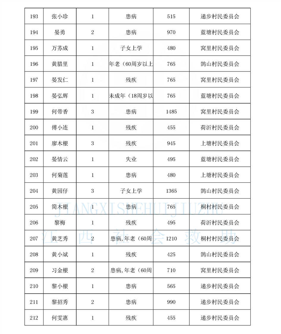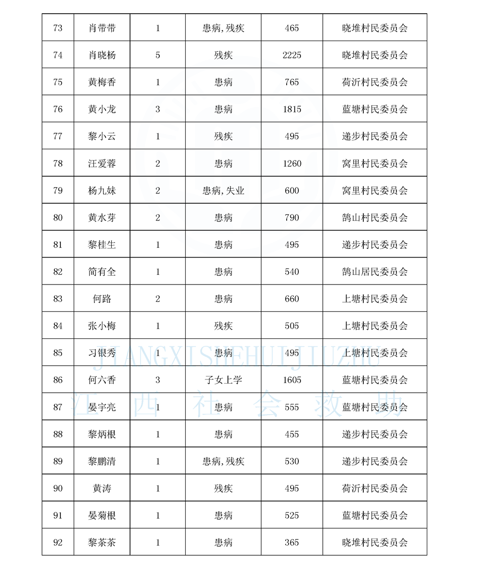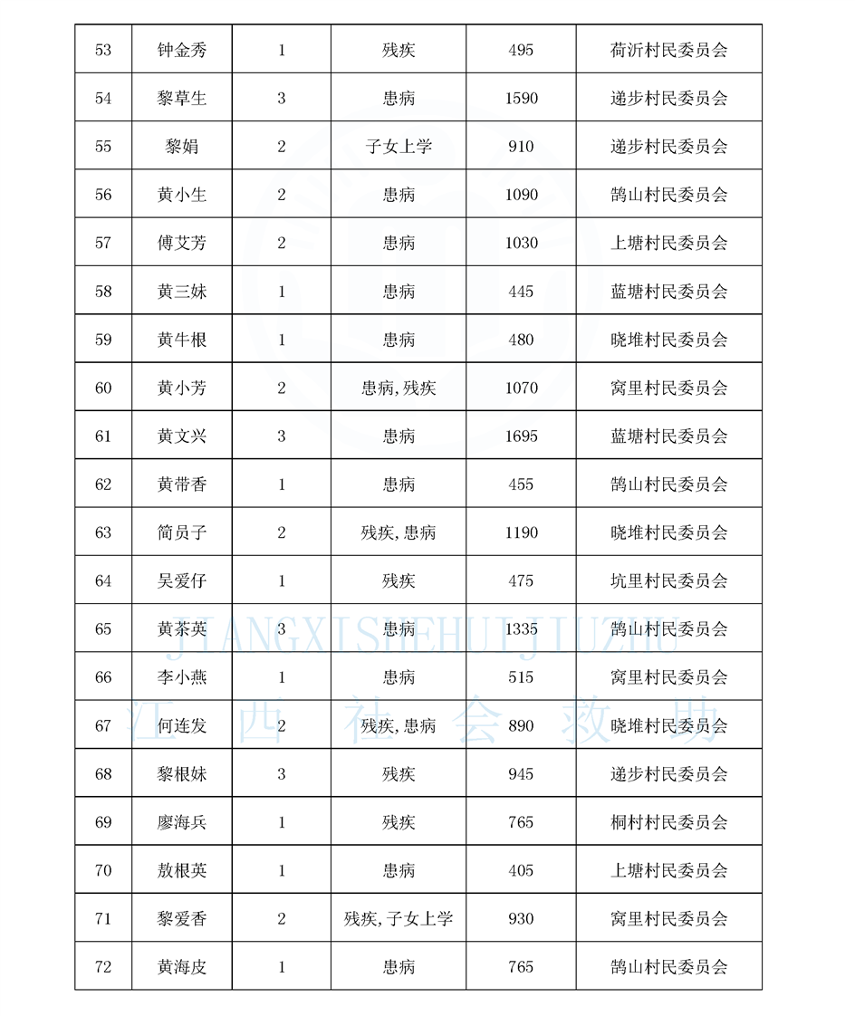 鵠山鎮2025年9月最低生活保障對象公布名單