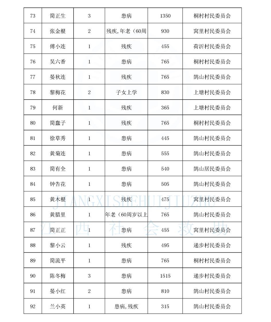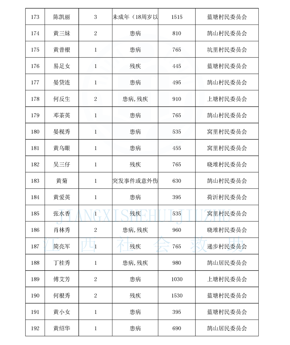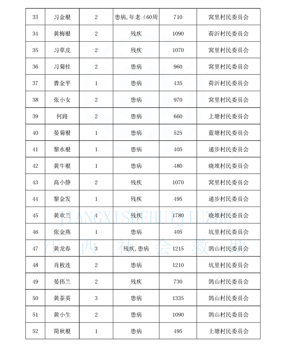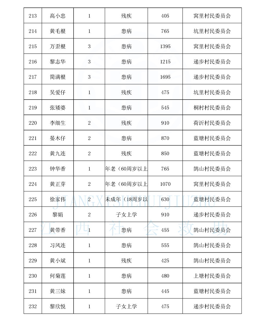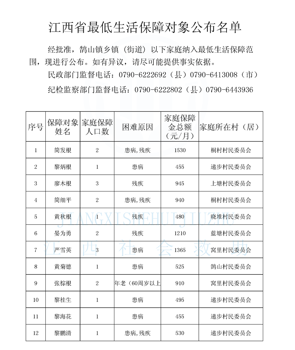 鵠山鎮2025年8月最低生活保障對象公布名單