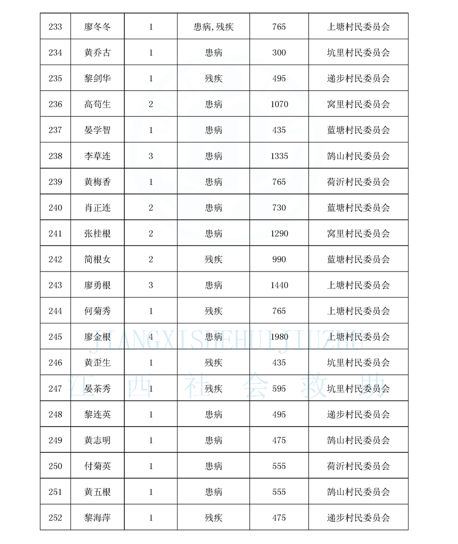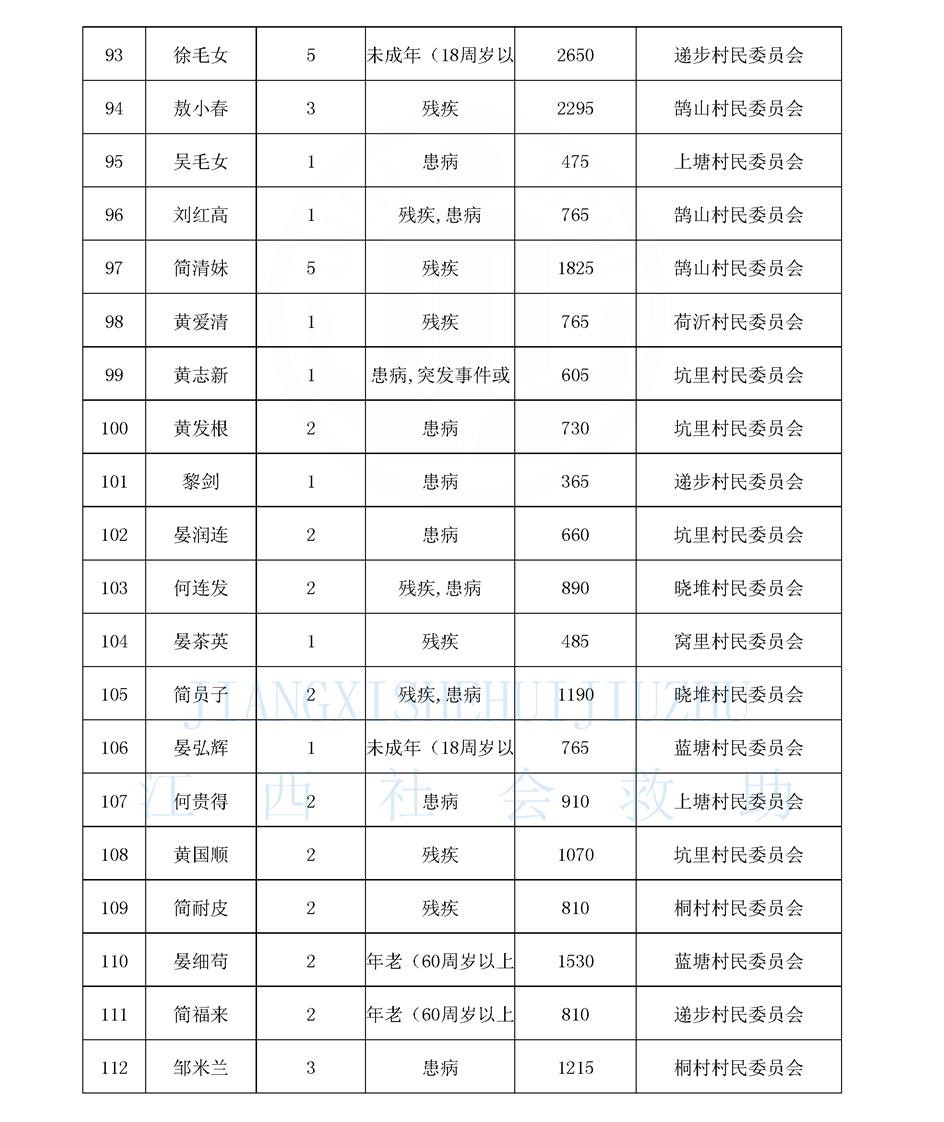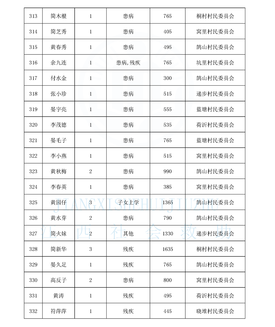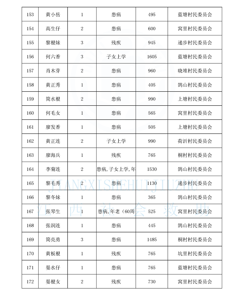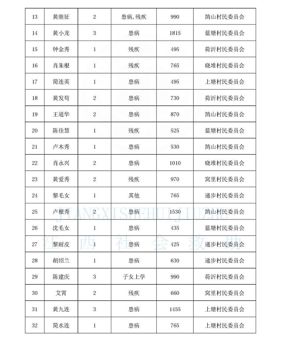 鵠山鎮2025年8月最低生活保障對象公布名單