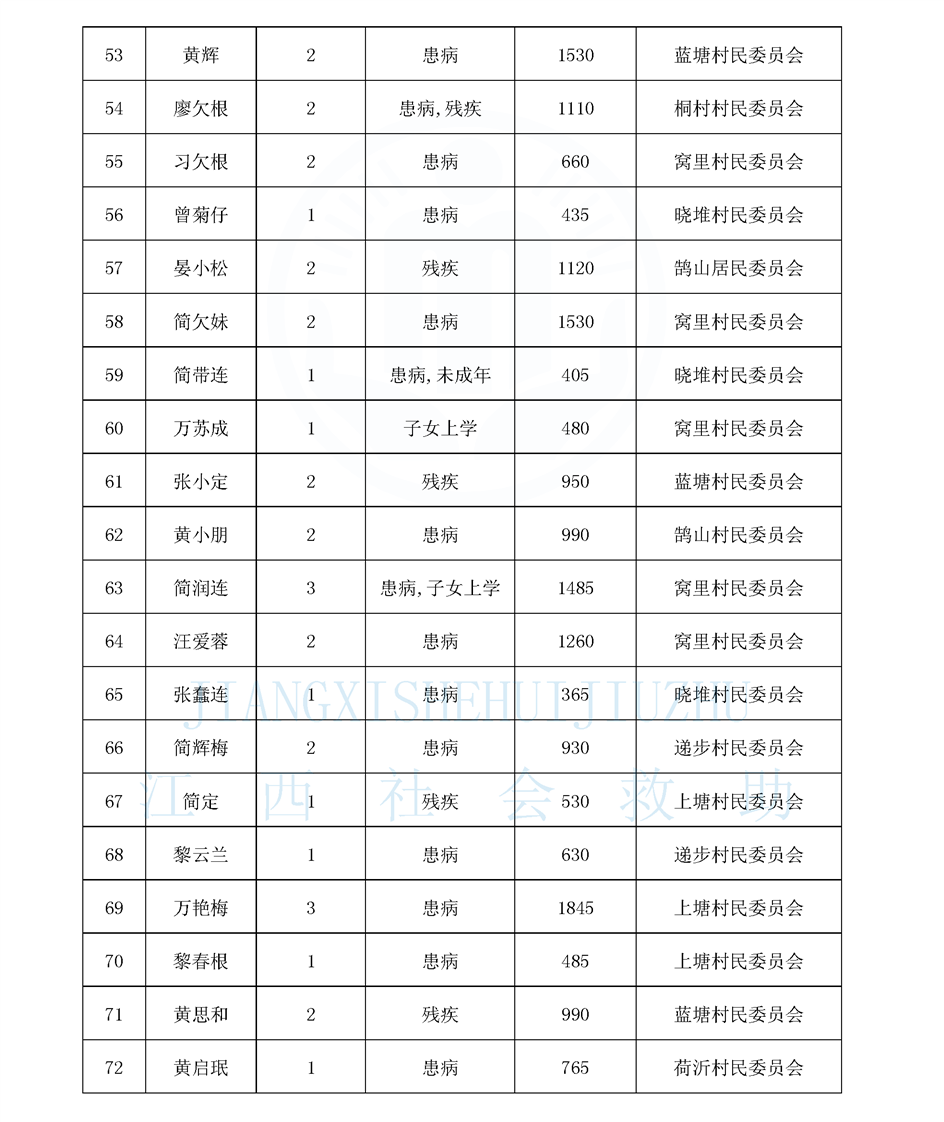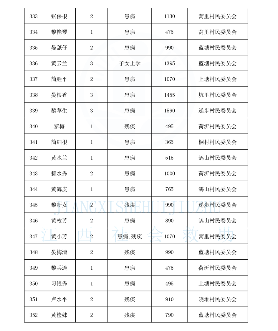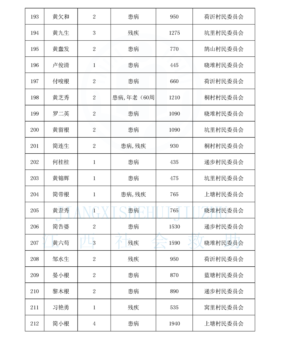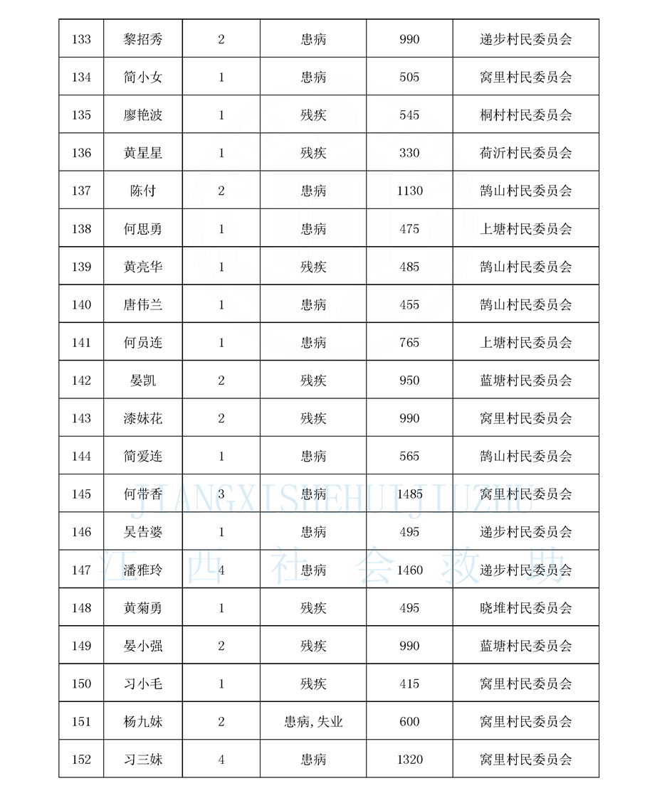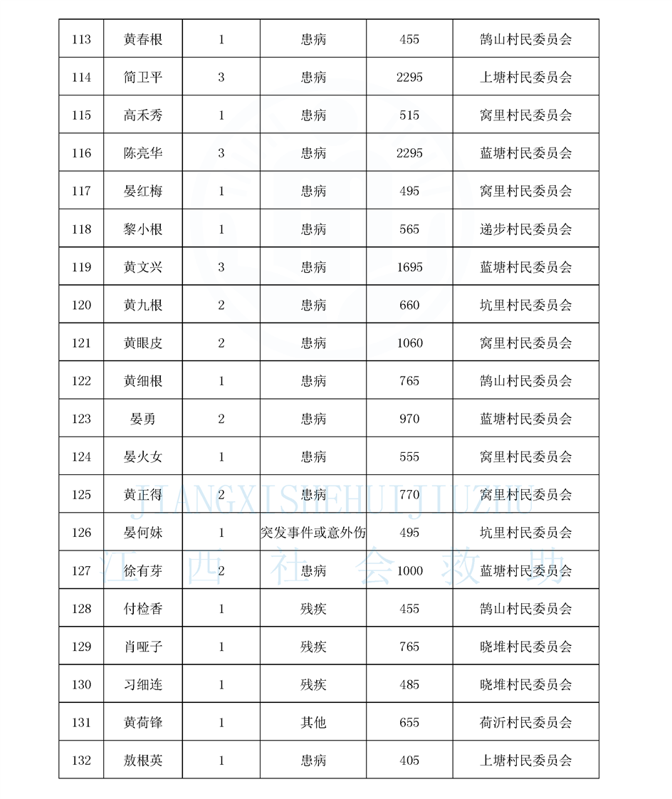 鵠山鎮2025年8月最低生活保障對象公布名單