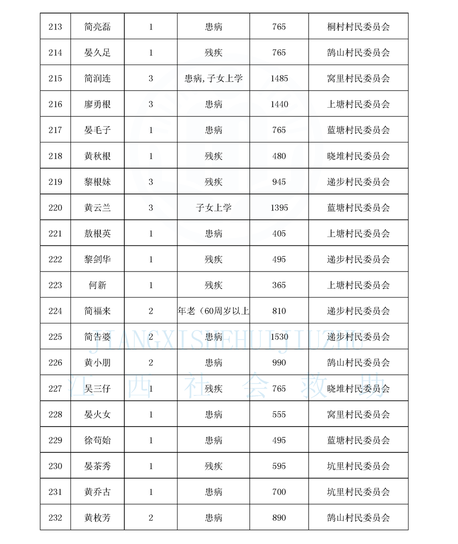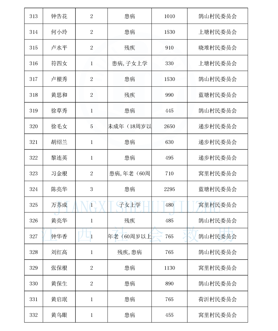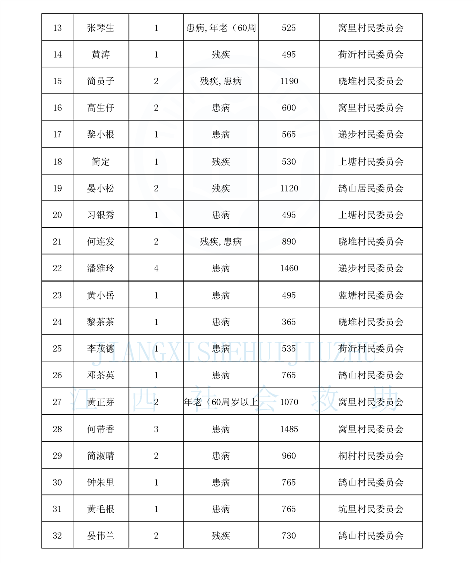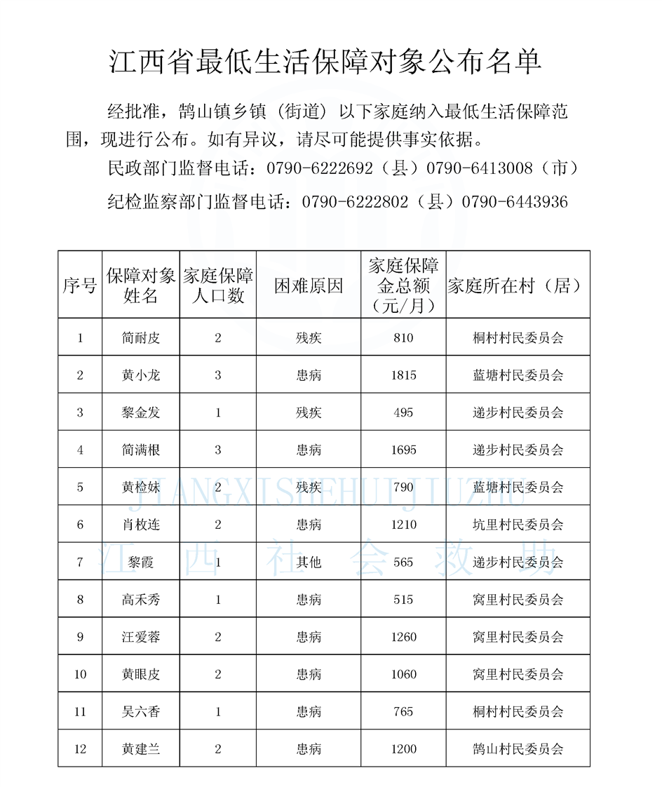 鵠山鎮2025年12月最低生活保障對象公布名單
